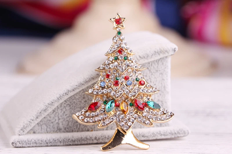 Vintage Crystal Christmas Tree Exquisite Brooch Creative Gift Exquisite Pin Gift