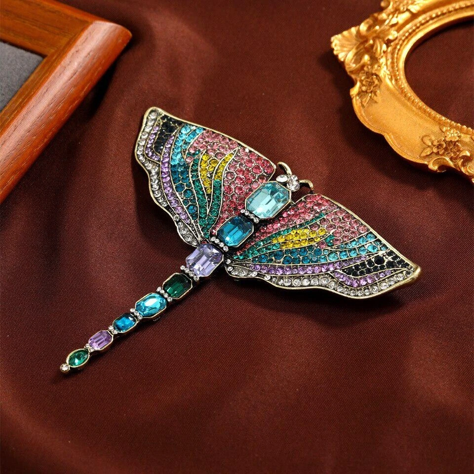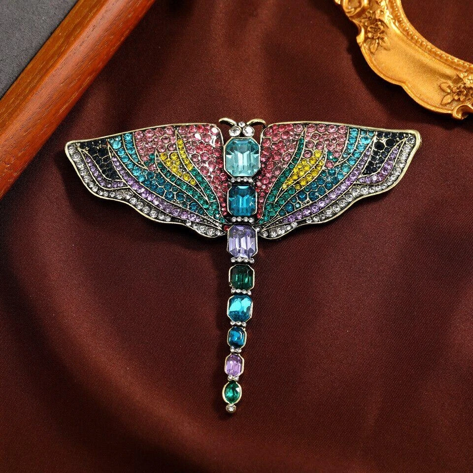 Vintage Crystal Dragonfly Brooches for Women Large Insect Brooch Pin Accessories