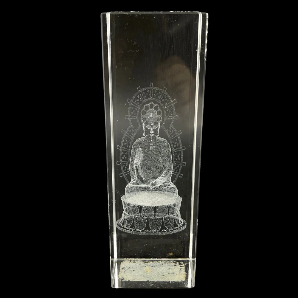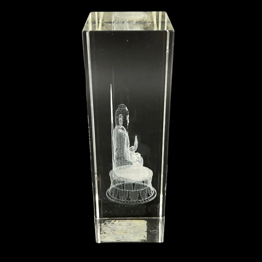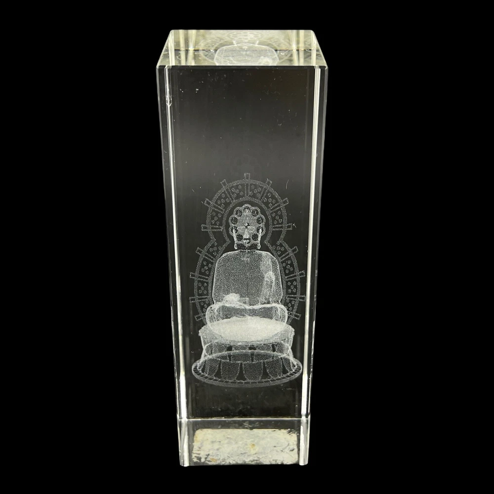 Vintage Crystal Glass Buddha Paperweight Laser Etched 3D Meditation 5 3/4" Tall