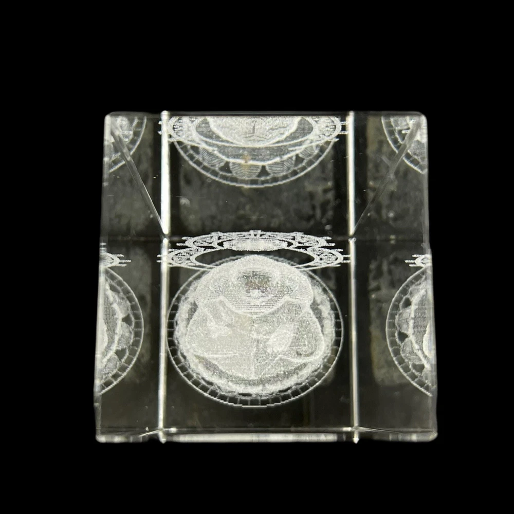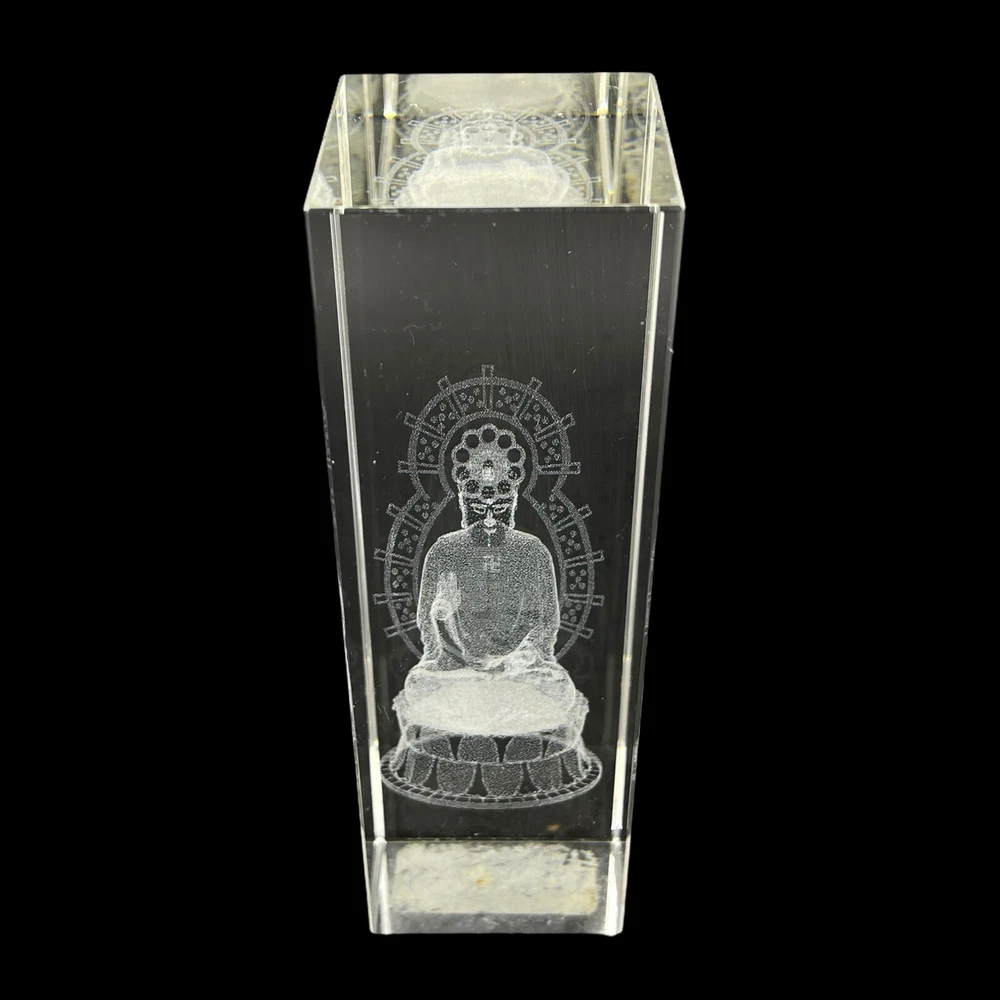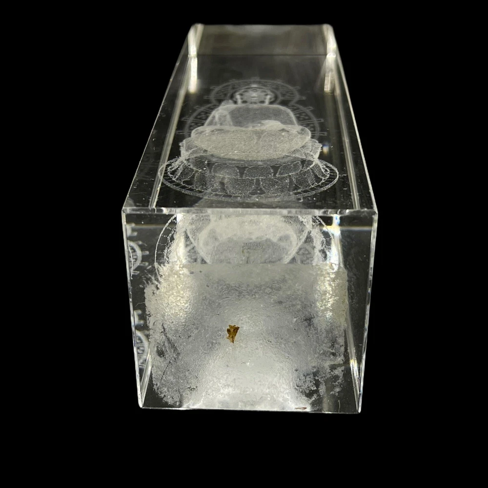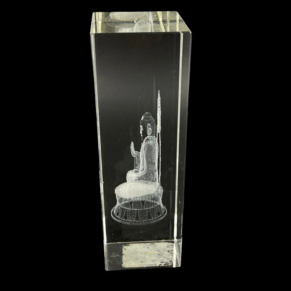 Vintage Crystal Glass Buddha Paperweight Laser Etched 3D Meditation 5 3/4" Tall