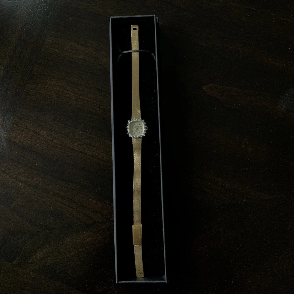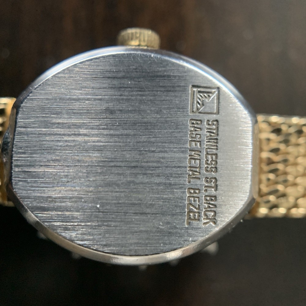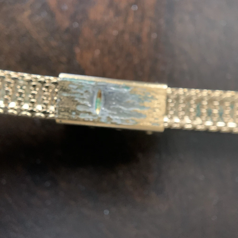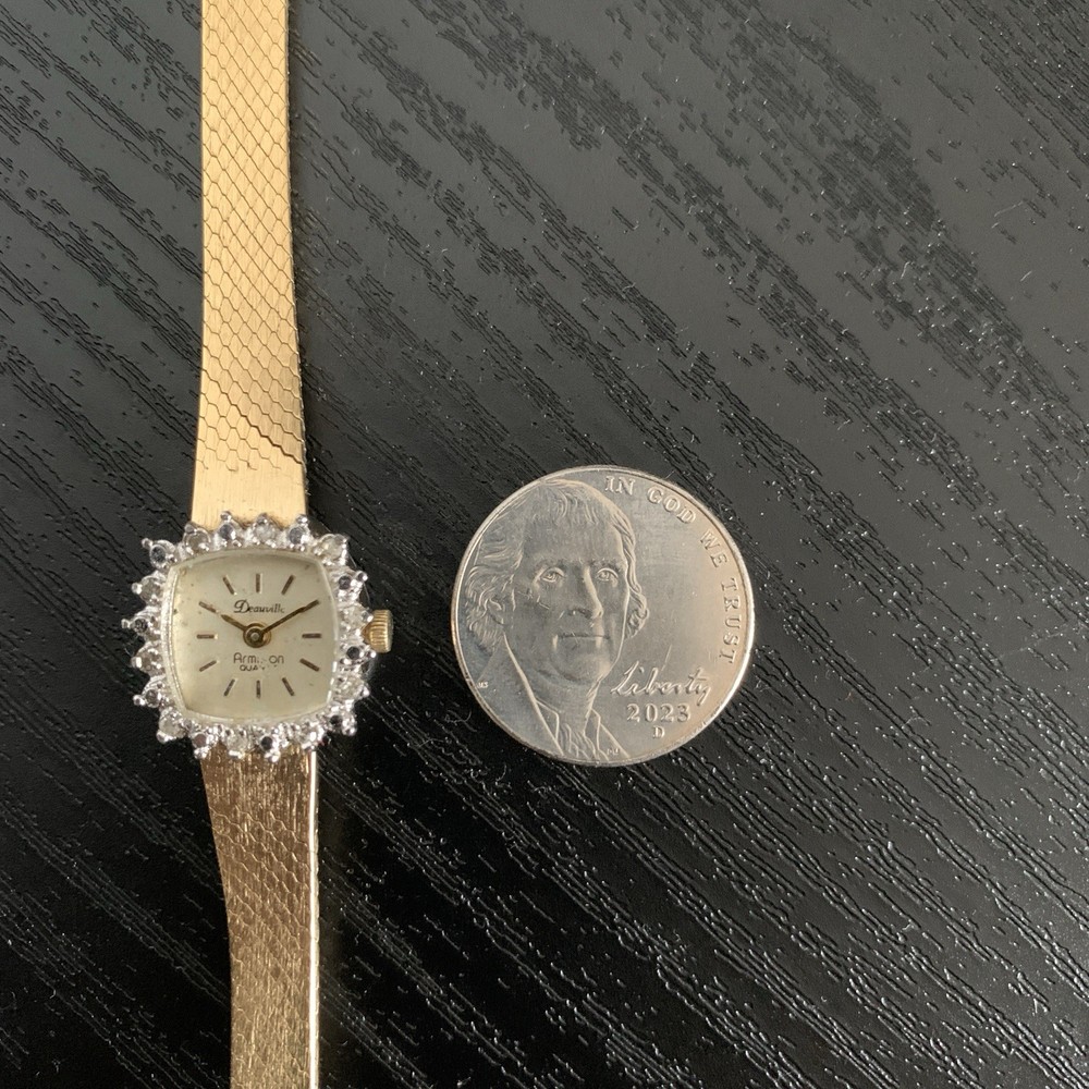 Vintage Armitron DEAUVILLE Gold-Tone Quartz Watch – Diamond Accents (Untested / Not running ) Elegant Square case in gold-tone finish with Diamond accents on the bezel for a classic vintage look Quartz movement – currently untested and not working ** The dial printing shows fading, and there is noticeable fading to the gold plating beneath the buckle snap, consistent with age and wear. Sold as-is, for parts, repair, or display No returns accepted