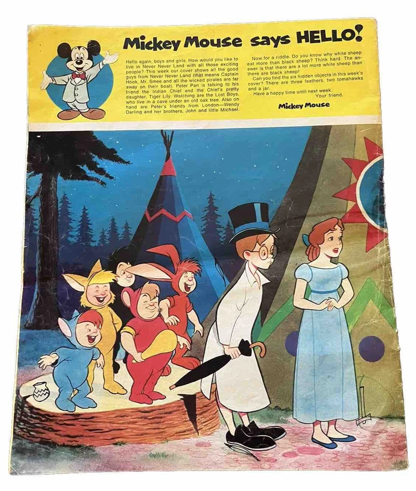 This vintage DISNEYLAND Magazine/comic No 55 is a rare 1970s DisneyMania item featuring the beloved character Peter Pan. With its collectible value, this item is a must-have for any Disney enthusiast. The magazine/comic is in great shape and contains interesting stories and pictures from the Disney world, making it a perfect addition to any Disneyana collection. The item belongs to the Contemporary (1968-Now) category and falls under Other Disneyana. Don't miss out on the chance to own this amazing piece of Disney history!