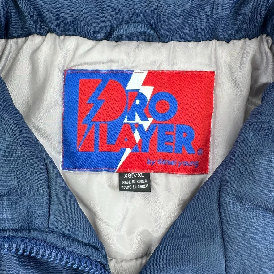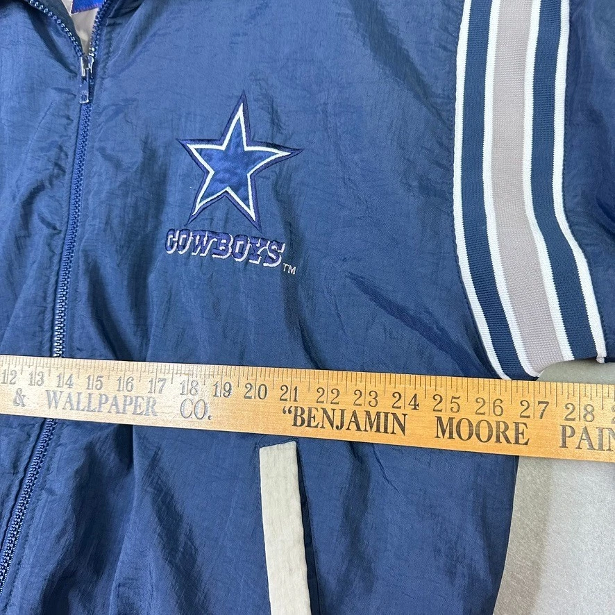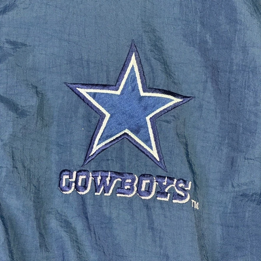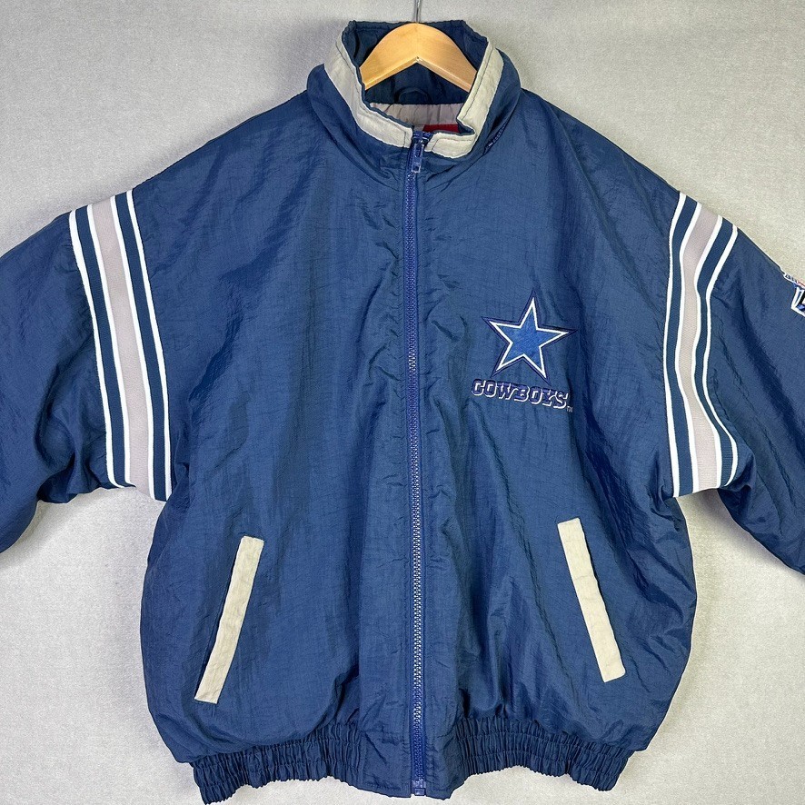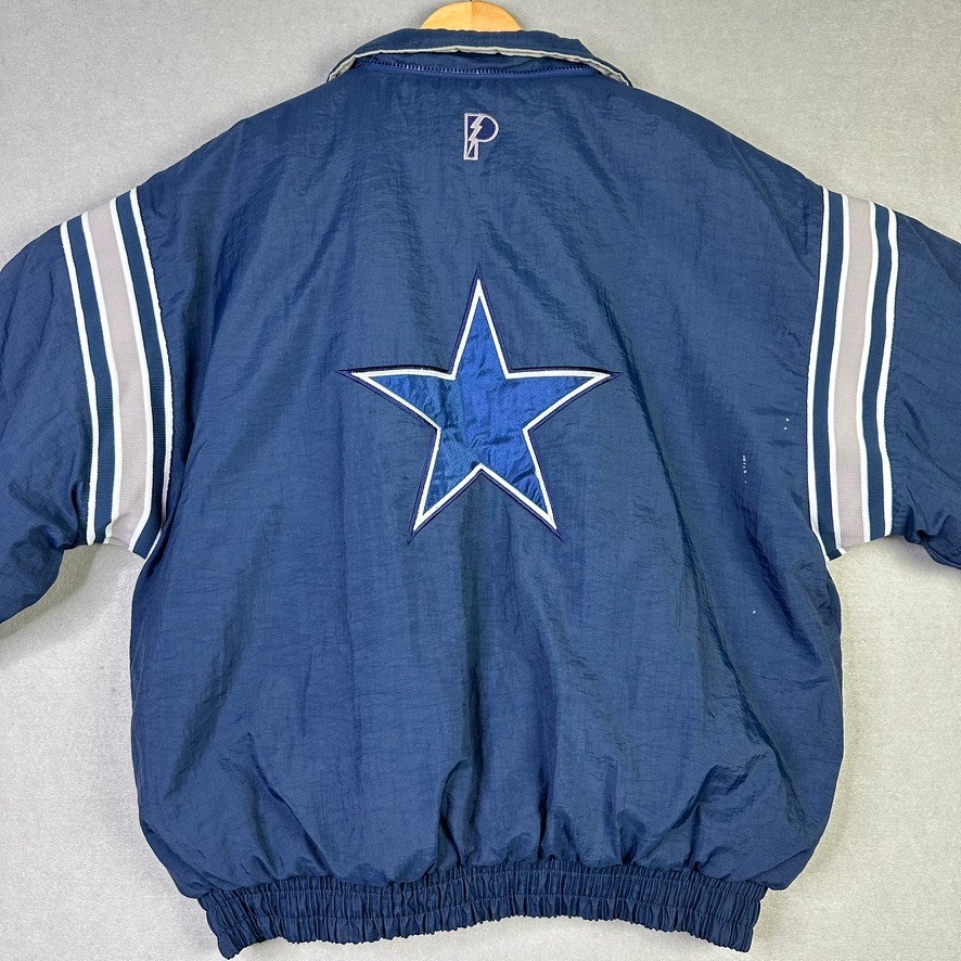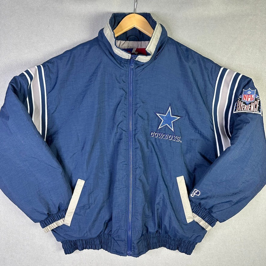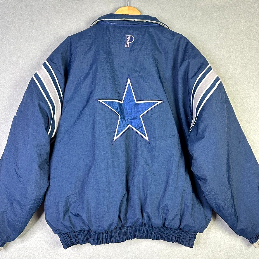 Vintage Dallas Cowboys Large Pro Player Football Puffer Jacket Size XL Big Star Jacket is in great, gently pre-owned condition. No major flaws, no rips or holes. Very minimal white staining on the back (see 5th picture). In excellent shape! Please review pictures for exact details, thank you! This vintage Dallas Cowboys Pro Player football puffer jacket in size XL features the iconic Big Star design. Made by Daniel Young, this unisex adult jacket is a must-have for any fan of the Dallas Cowboys. The jacket is in multi-color, representing the team's colors, and is a perfect addition to any sports memorabilia collection. Made in Korea, Republic of, this jacket is a unique and stylish way to show your support for your favorite NFL team.