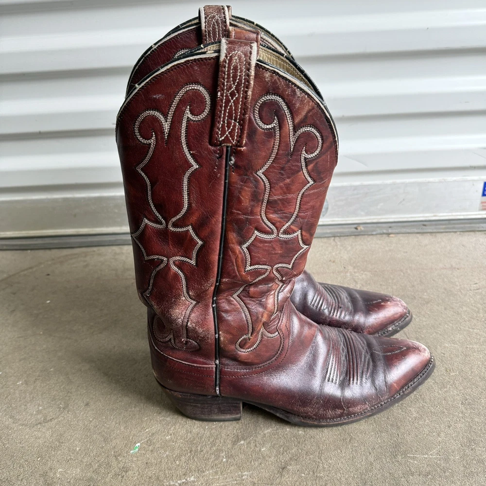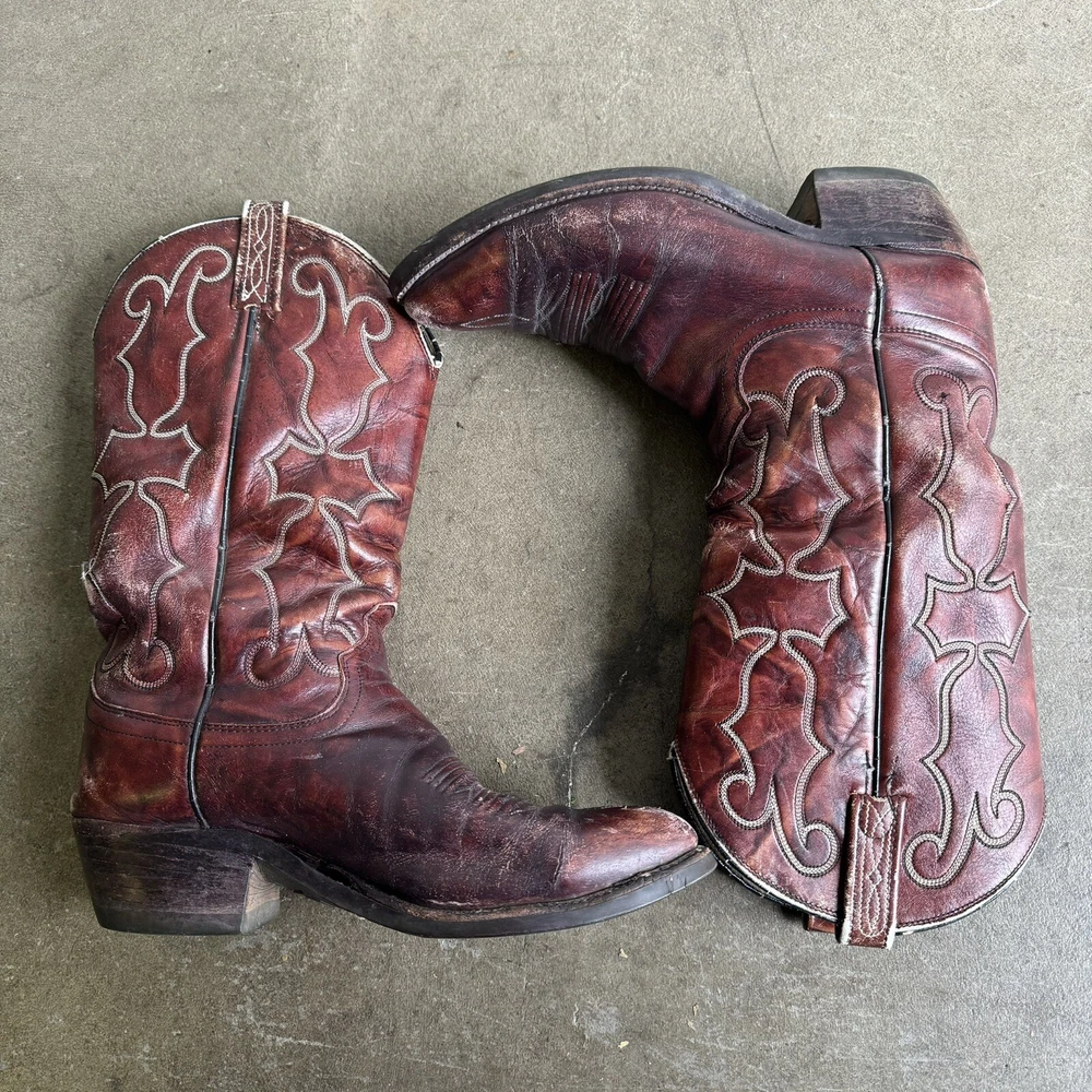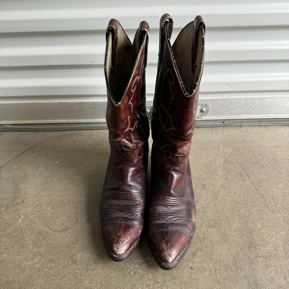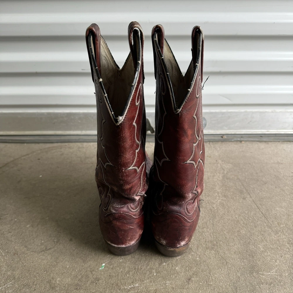 Vintage Dan Post Cowboy Boots Burgundy Pull On Distressed Western 8729 8.5 D