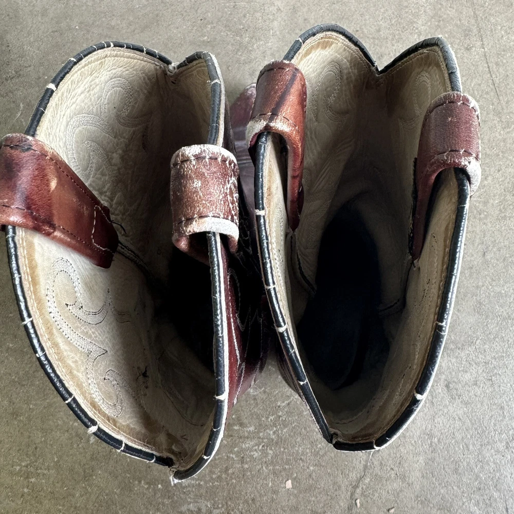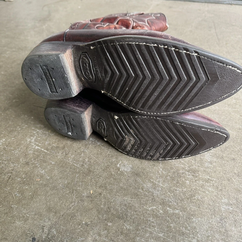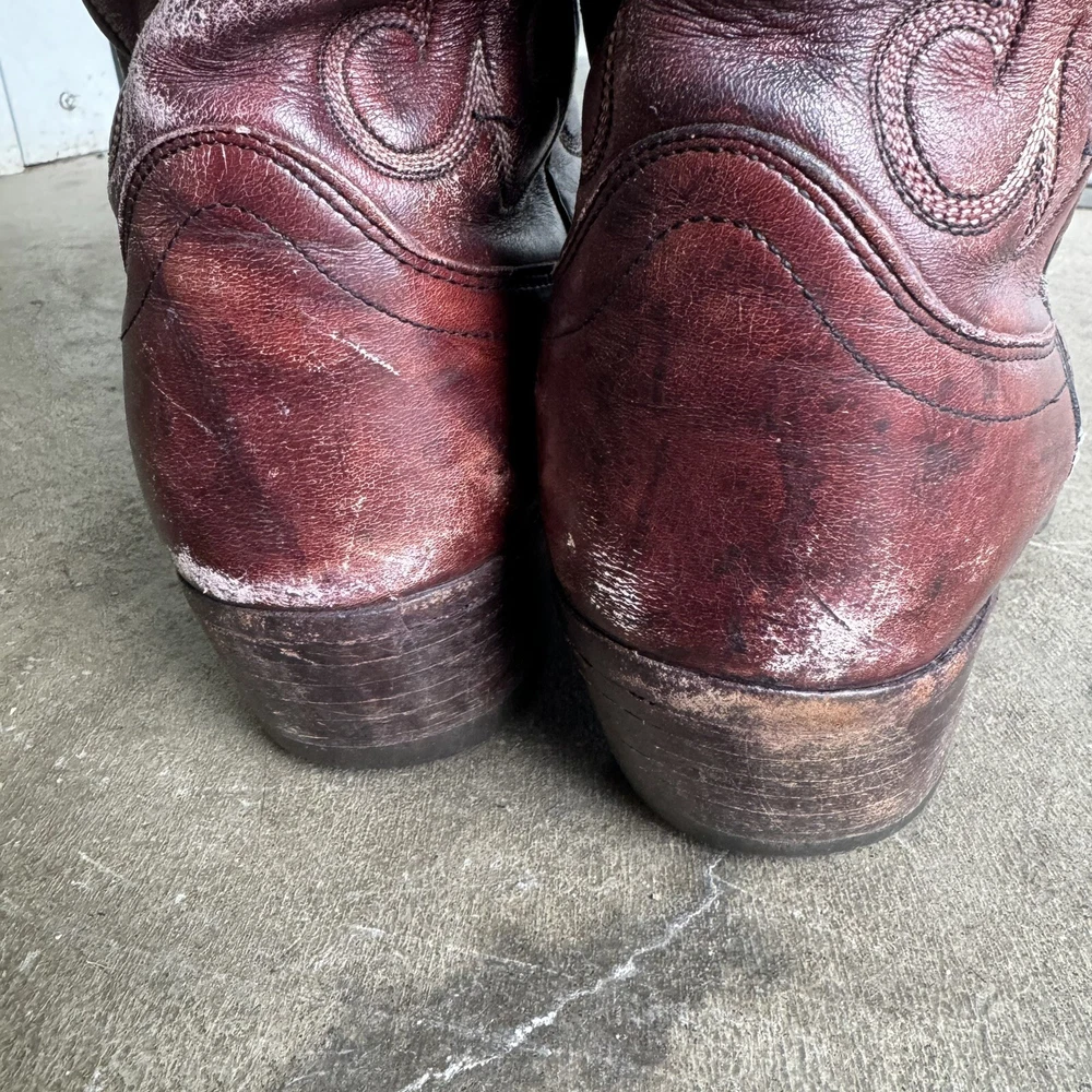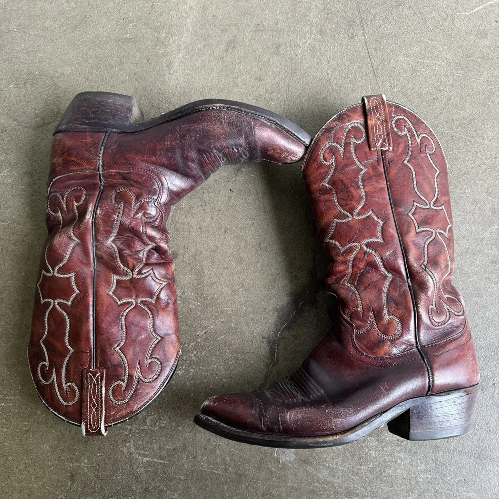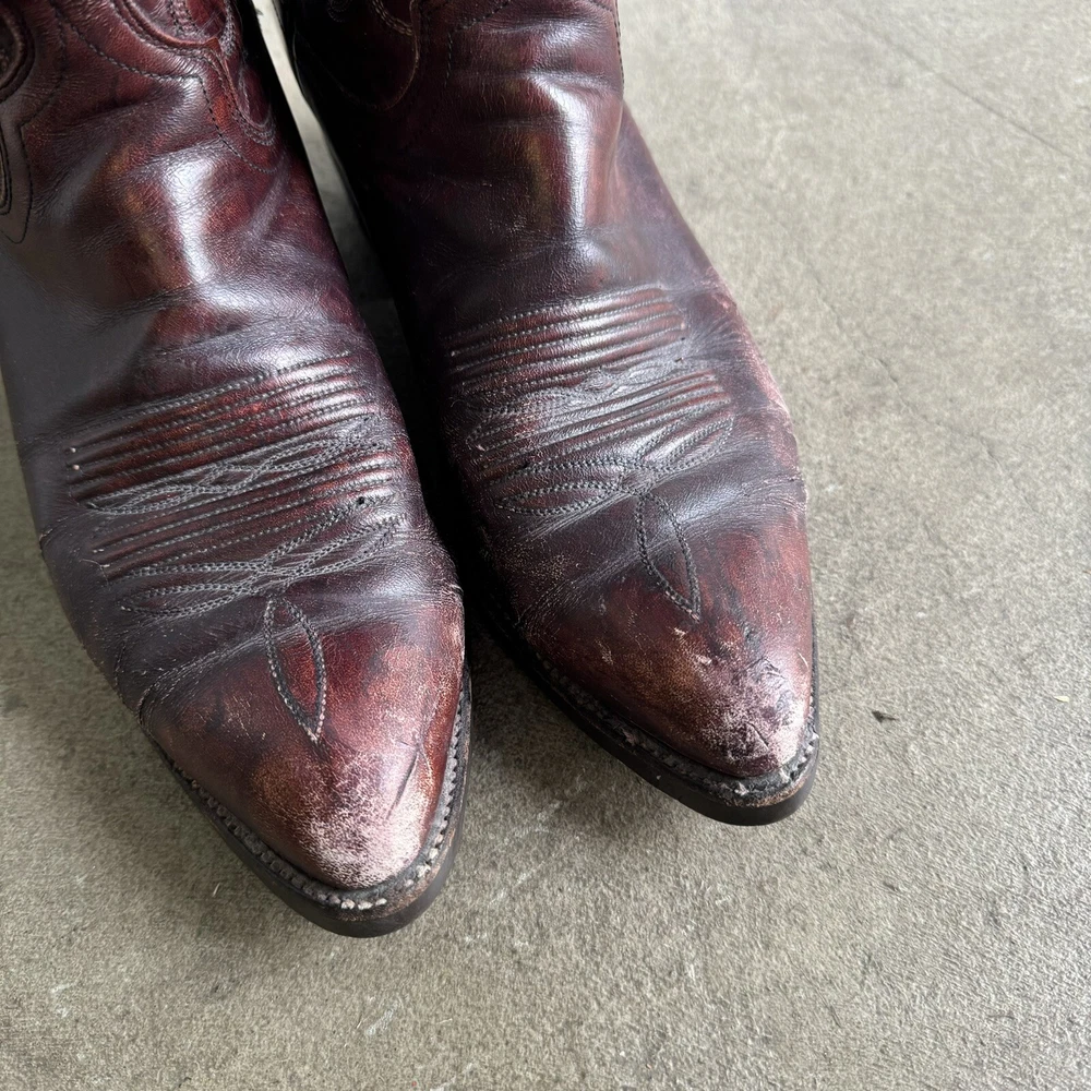 Vintage Dan Post Cowboy Boots Burgundy Pull On Distressed Western 8729 8.5 D