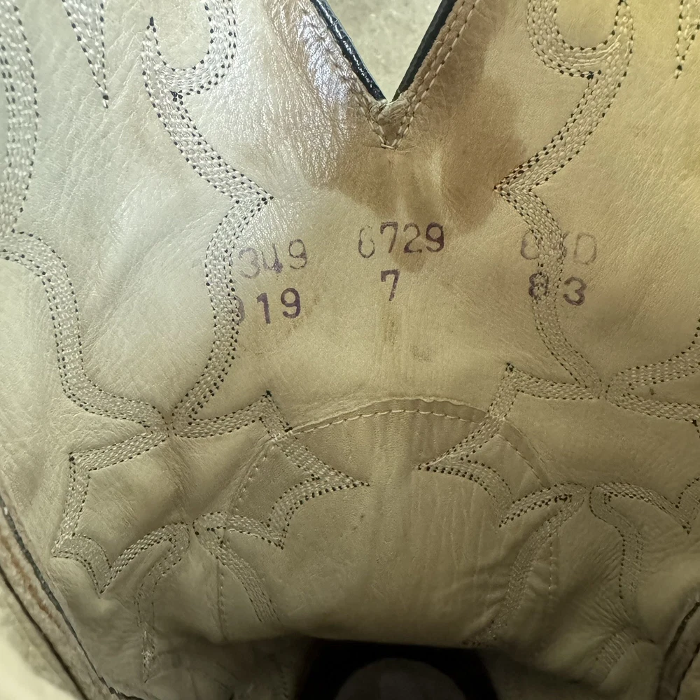 Department:MenStyle:WesternTheme:CowboyBrand:Dan PostUS Shoe Size:8.5Type:BootModel:Dan Post 8729Color:RedVintage:YesUpper Material:LeatherClosure:Pull On