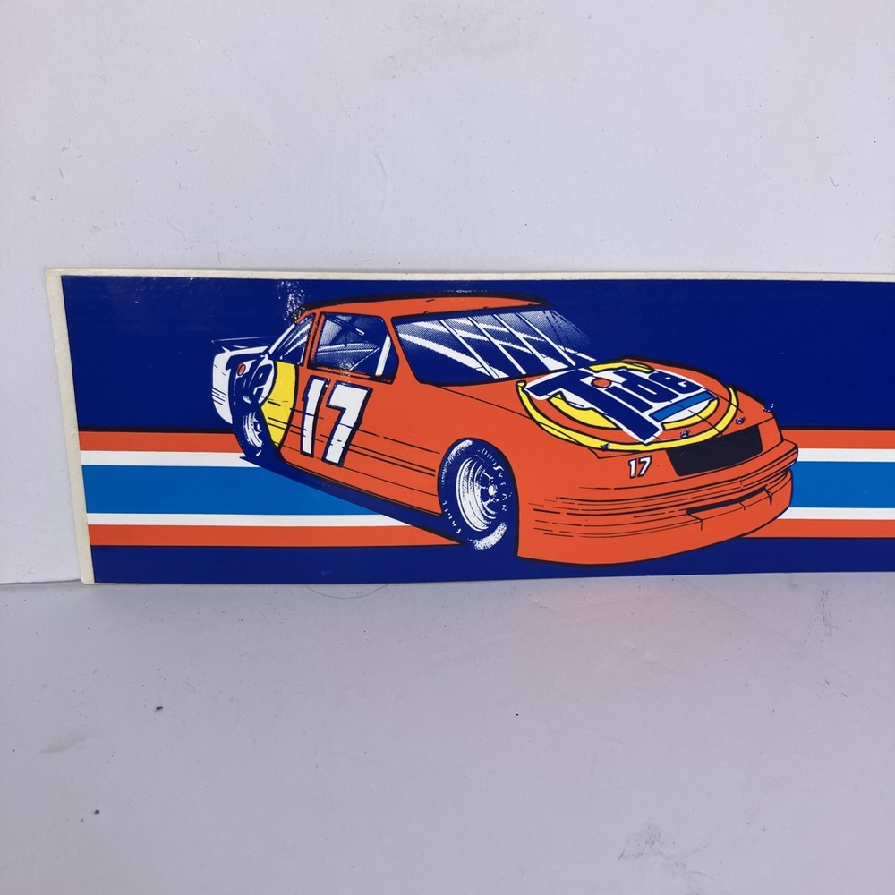 The product is a vintage Darrell Waltrip #17 bumper sticker or decal, featuring the iconic NASCAR driver's number and name. The decal is in multi-color and is a must-have item for fans of NASCAR and collectors of racing memorabilia. This item is perfect for showing support for Darrell Waltrip and adding a touch of nostalgic flair to any car or collection.