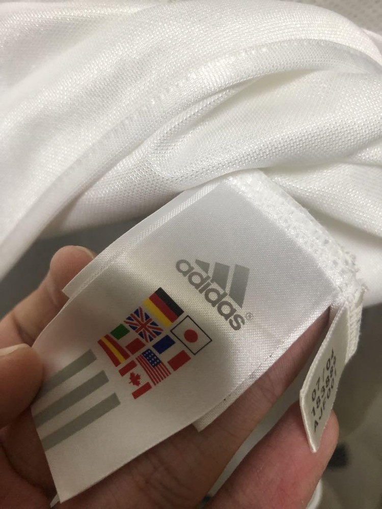 Player: David Beckham California Prop 65 Warning: NA Color: White Product: Jersey Team: Real Madrid Size: M Officially Licensed: NA Capacity: NA Sport: Soccer Gender: Men UPC: Does Not Apply Event/Tournament: NA gtin13: Does Not Apply Brand: adidas Country/Region of Manufacture: NA