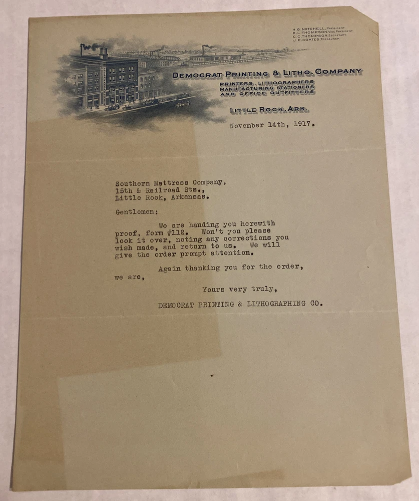 Vintage Democrat Printing & Litho Co ornate Letterhead Little Rock Arkansas