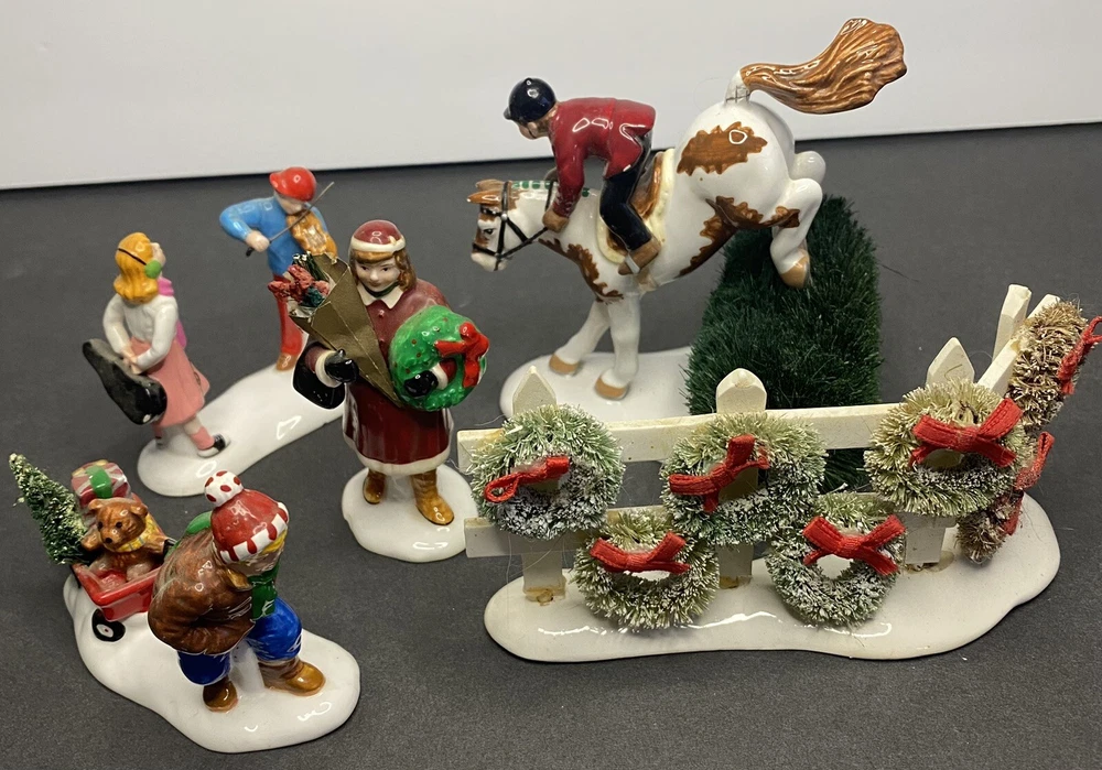Dept 56 Bucks County Horse Riding (horse only) Mixed Lot As Is. Paint damage and some chips, see photos for condition of items. The fence is discolored. Thanks for viewing.