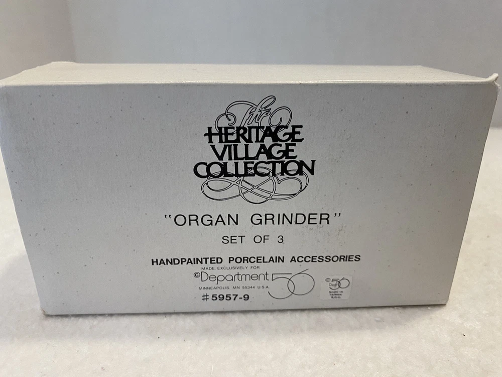 Boy is missing. Box and sleeve included, but styrofoam cover is missing for box - will be well packaged. Dept 56 Heritage Village Accessories Organ Grinder, Set of 3, 5957-9 READ. Bin NN