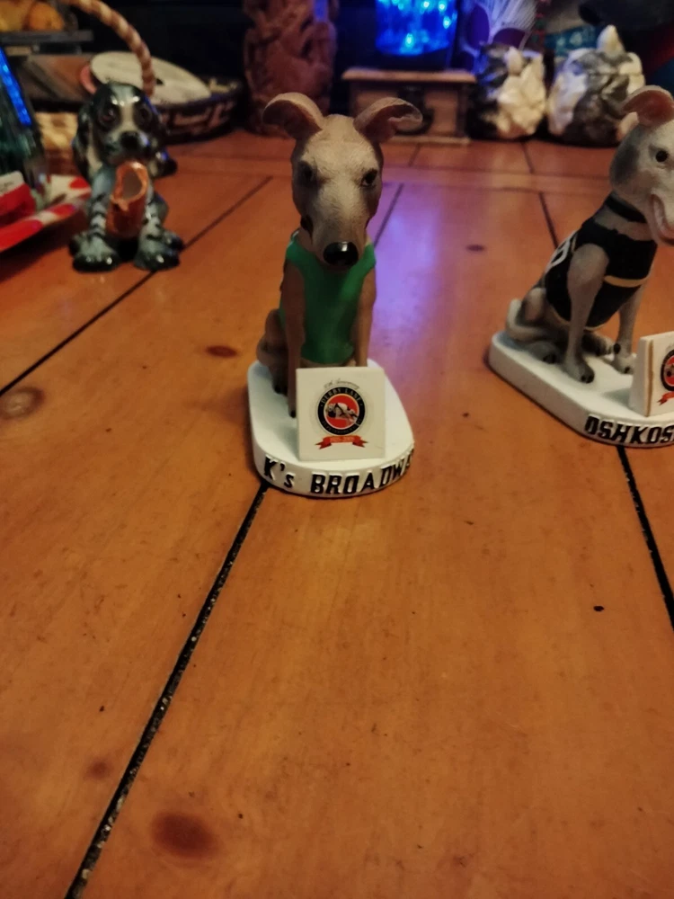 This vintage Derby Lane dog bobblehead is a must-have for any collector. Featuring Kay's Broadway Number 7, this bobblehead is a unique addition to your collection. The dog is beautifully crafted and the bobblehead is in great shape. Perfect for any lover of collectibles, this bobblehead is a great conversation starter. The Derby Lane dog is a beloved character and this model is a true gem for collectors. Add this to your collection today and enjoy the charm it brings to your home.