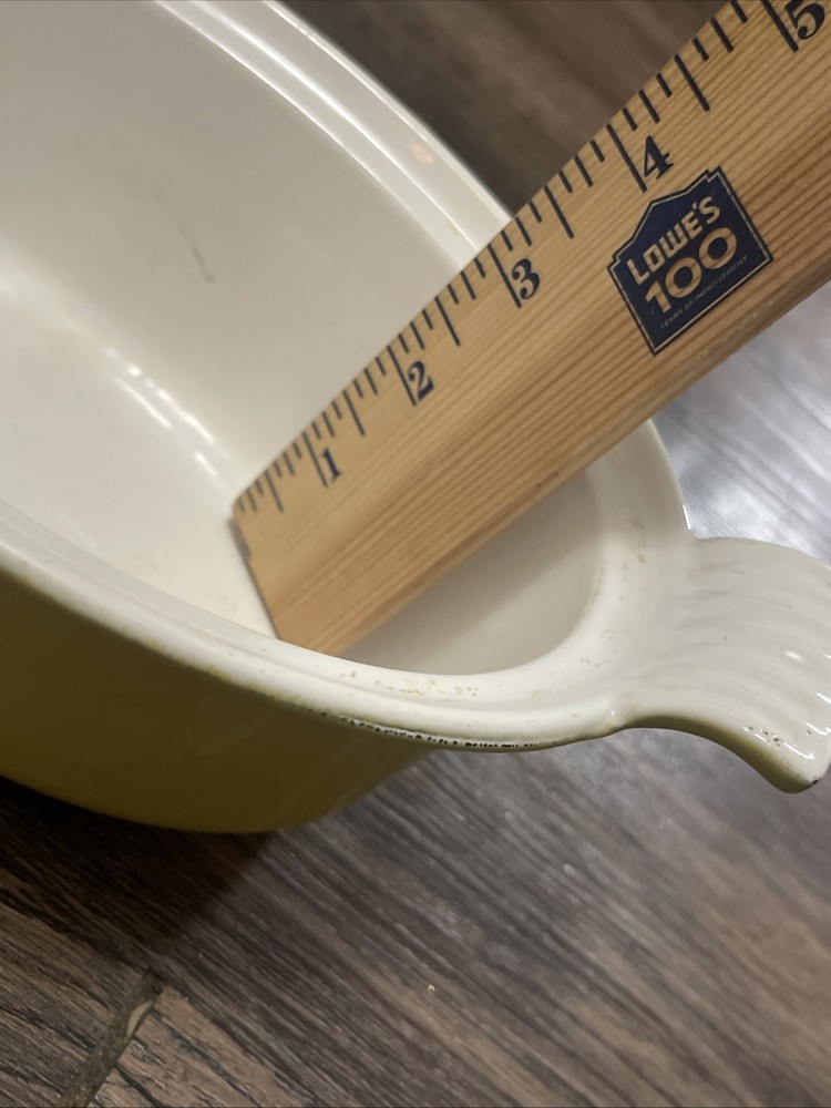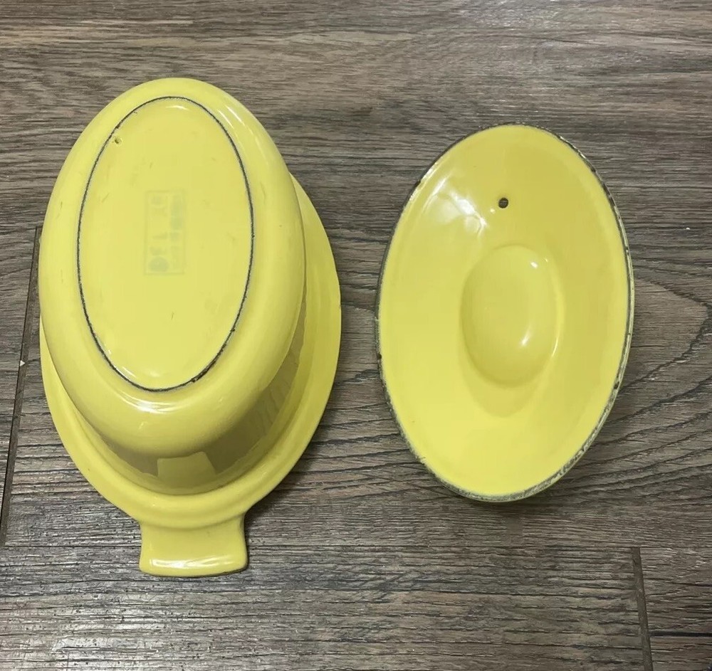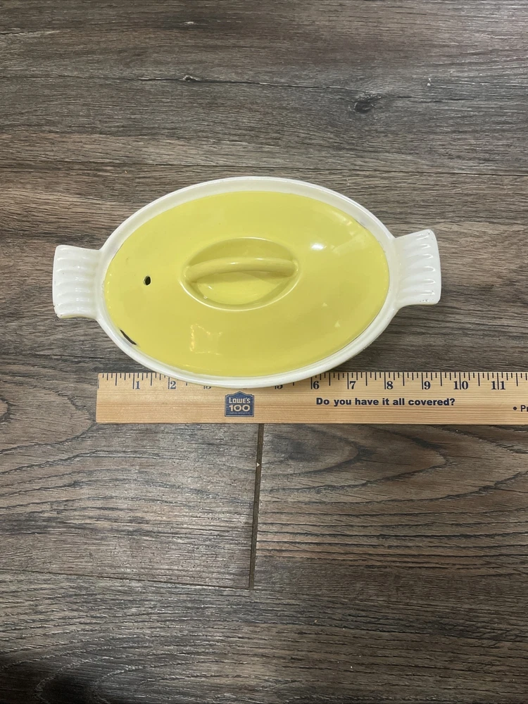 Color:YellowStove Type Compatibility:Electric, GasSet Includes:LidFeatures:With LidCountry/Region of Manufacture:BelgiumVintage:YesMaterial:Cast IronSurface Coating:CeramicType:CasseroleShape:OvalBrand:Descoware