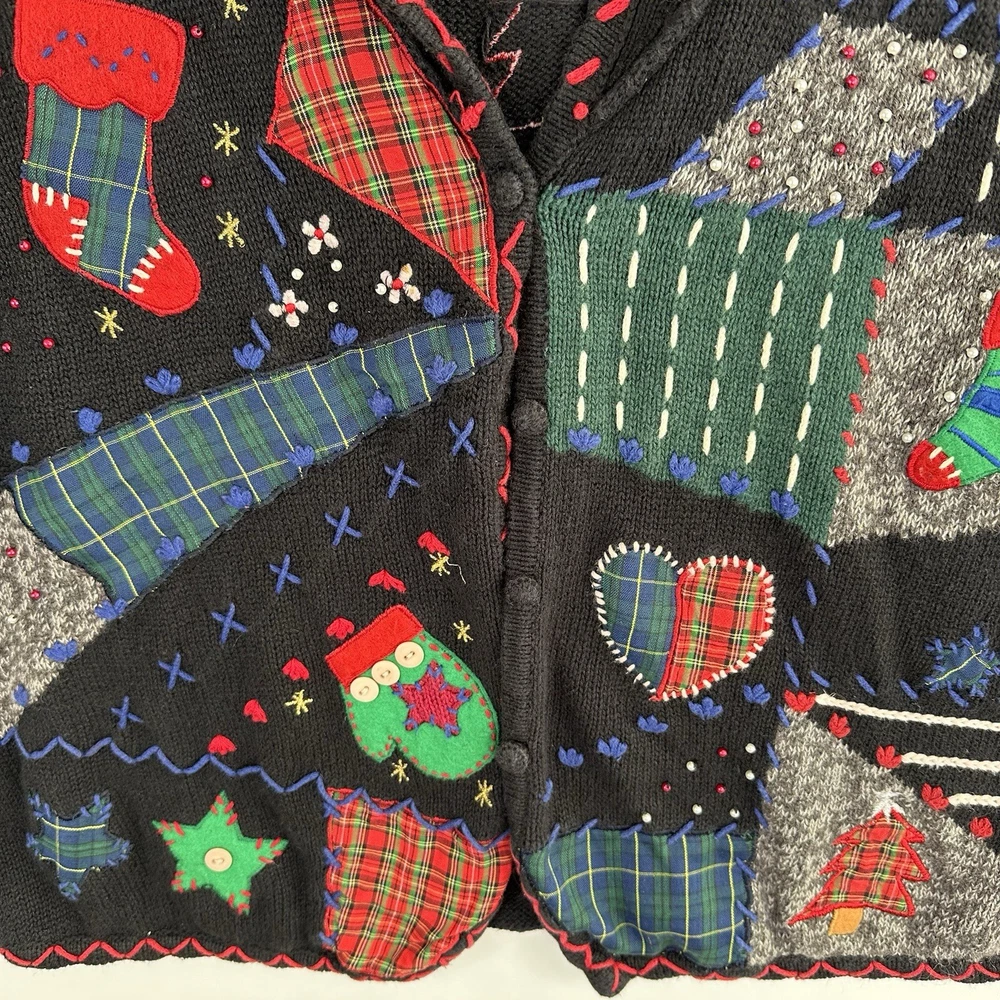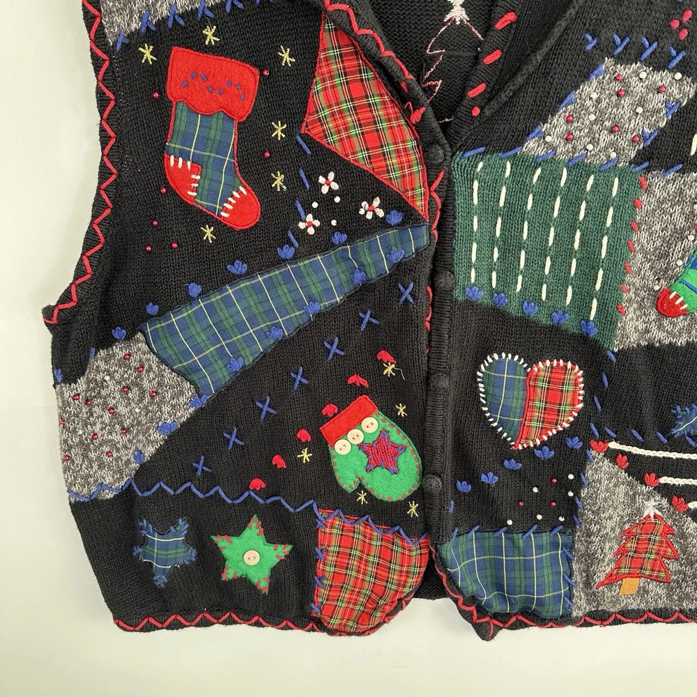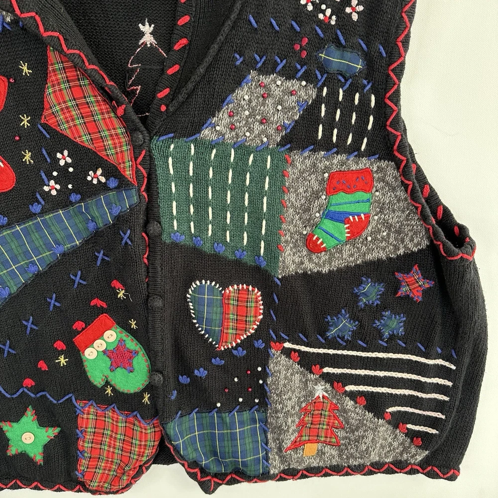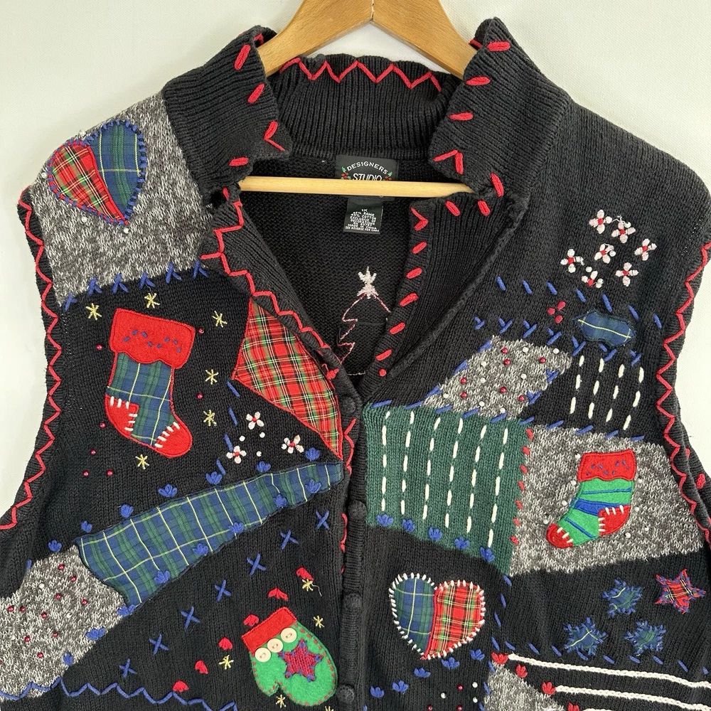 Vintage Designers Originals STUDIO Christmas Sweater Vest Stockings Patchwork 1X