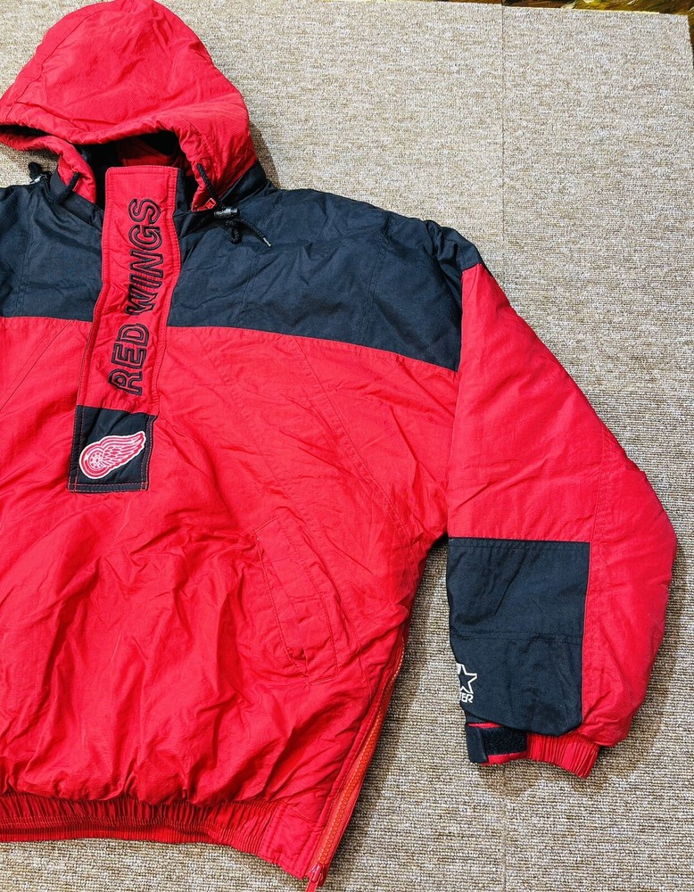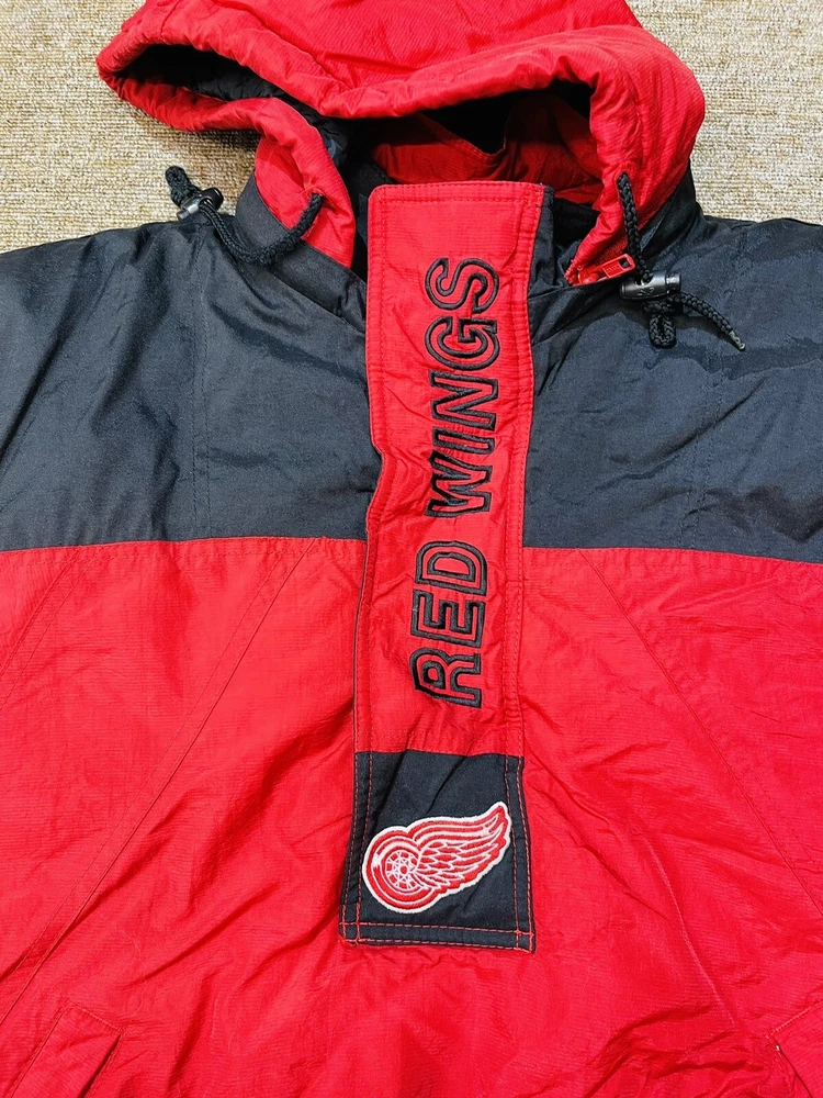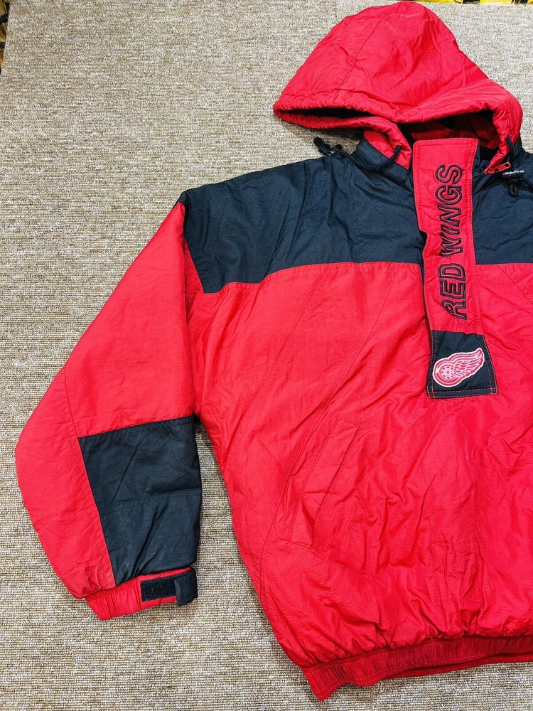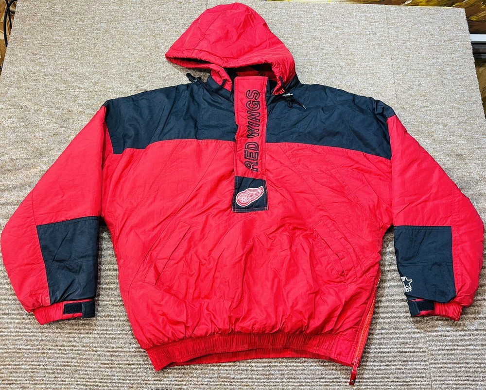 Vintage Detroit Red Wings NHL Starter Hooded Pullover Jacket Size Medium