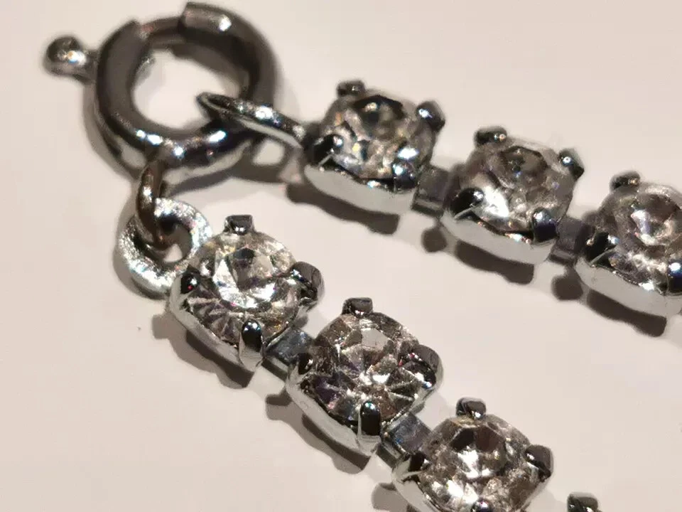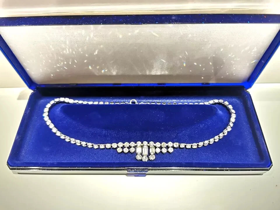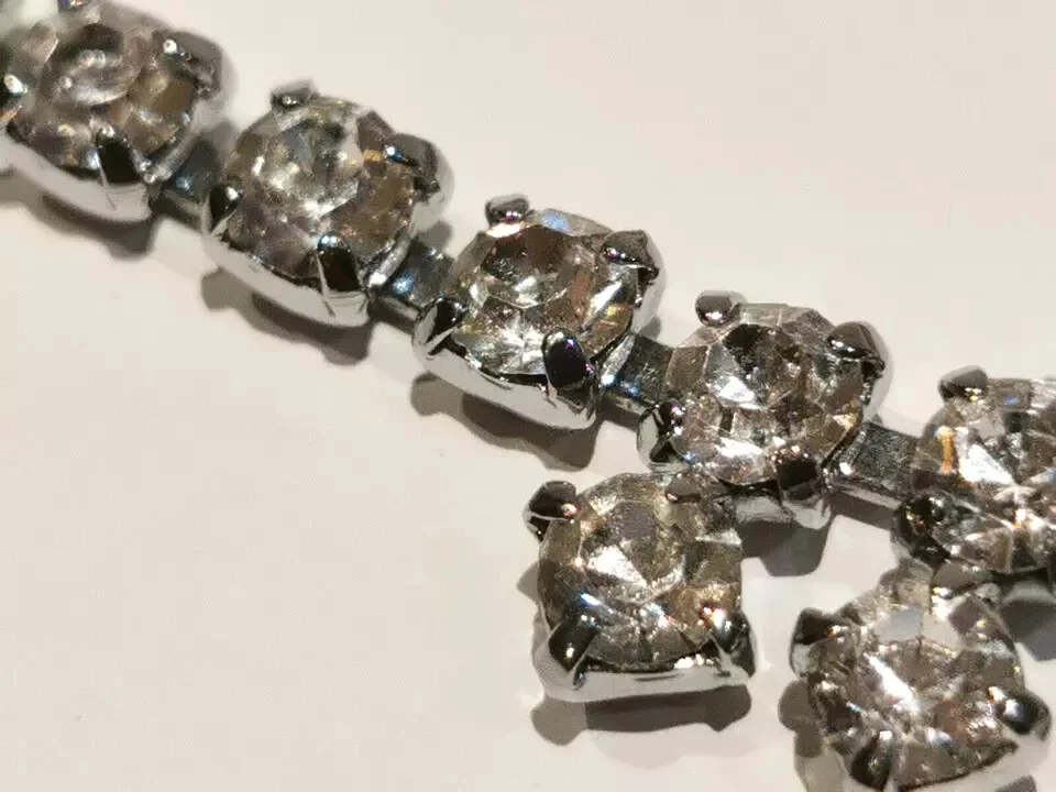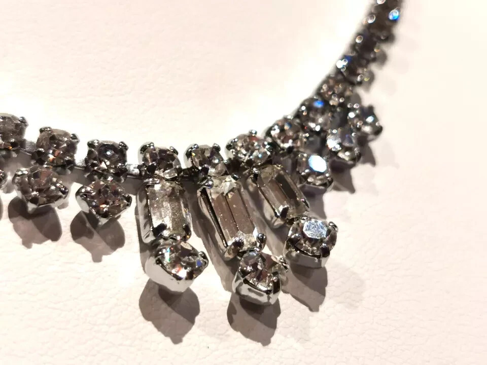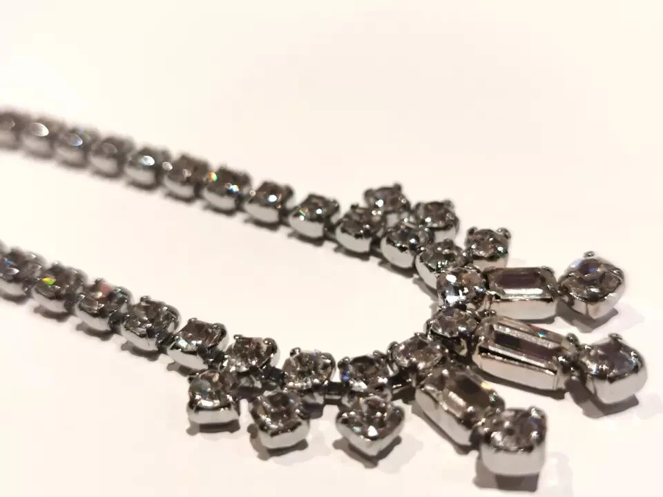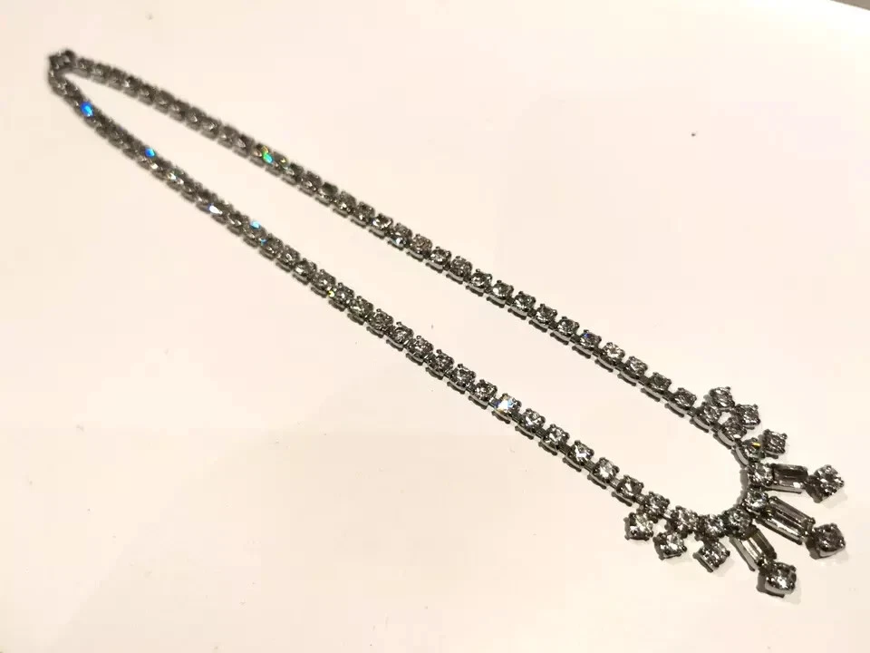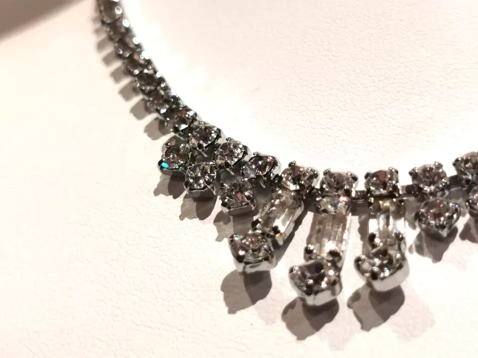 A pretty Vintage Diamante Necklet Plated base metal Circa 1950s Still as good as new. Measures 15.5" Weight 16.3 grams Complete with gift box