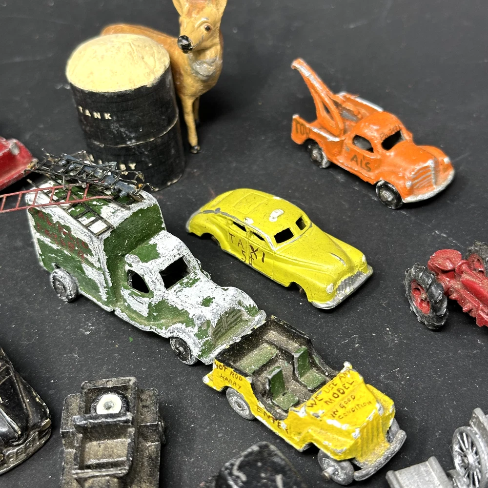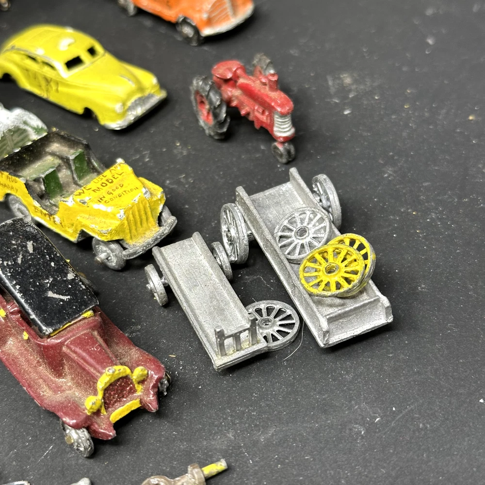 Vintage Die Cast Metal Cars Trucks Tractor Carts Lot and Accessories