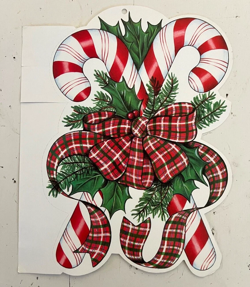 Vintage Die-Cut Eureka USA Christmas Candy Cane Decoration 12” Double Sided never been used.