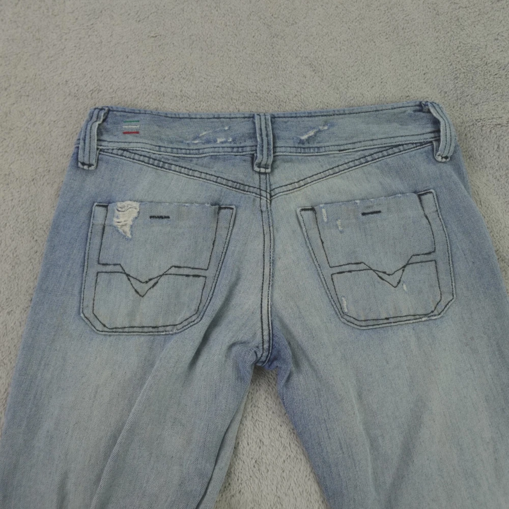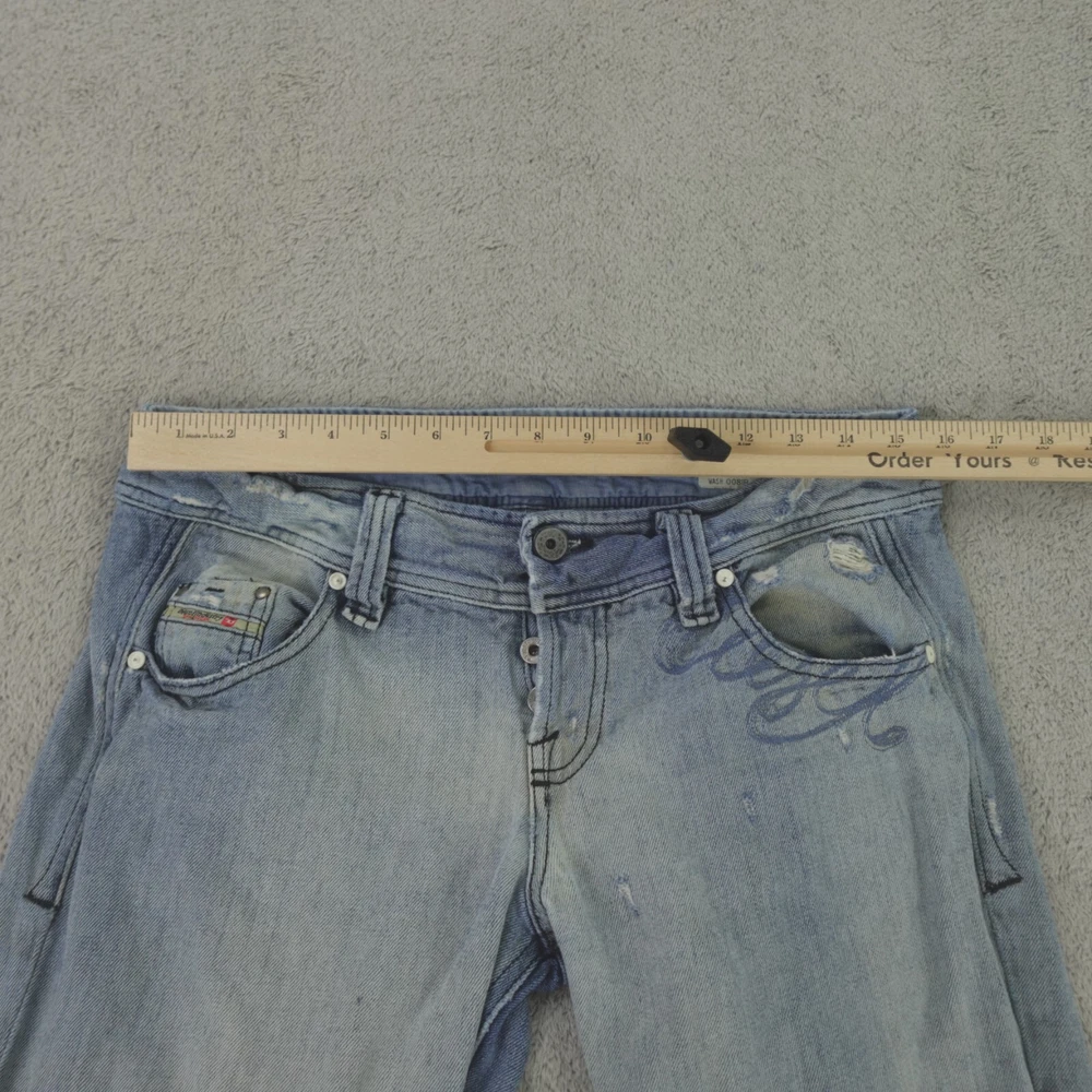 Style: Wide-Leg Fabric Type: Denim Color: Blue Size: 29 Fabric Wash: Light Brand: Diesel Size Type: Regular Pattern: Solid Inseam: 31 in Country/Region of Manufacture: Italy Type: Jeans Department: Women Rise: Low (6.5-8.5 in) Waist Size: 31 in