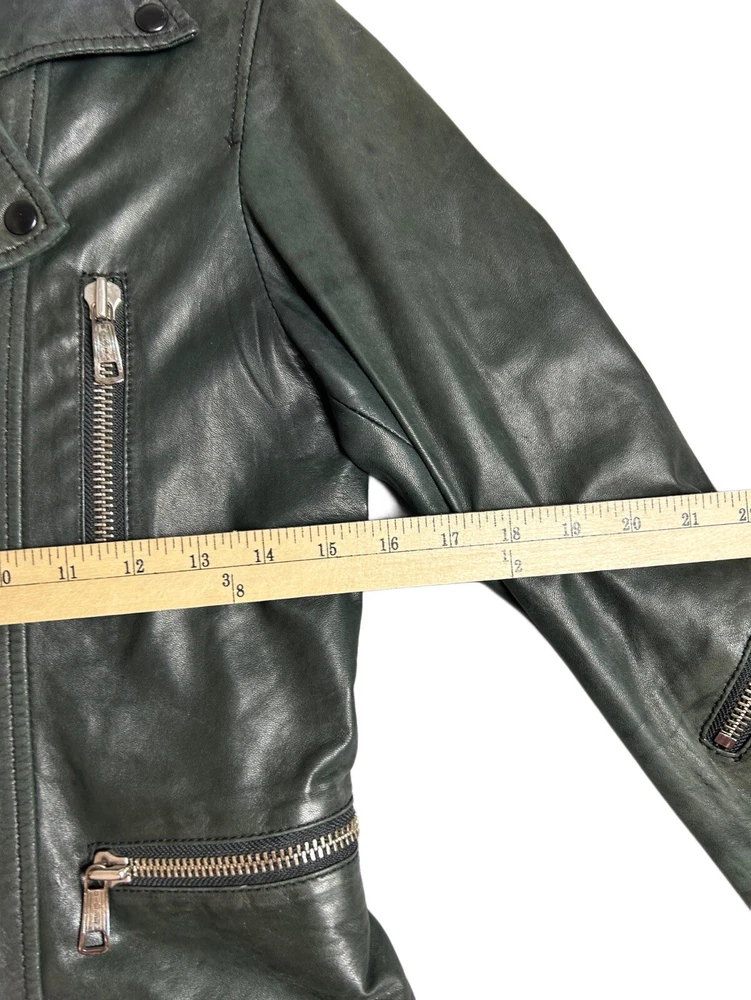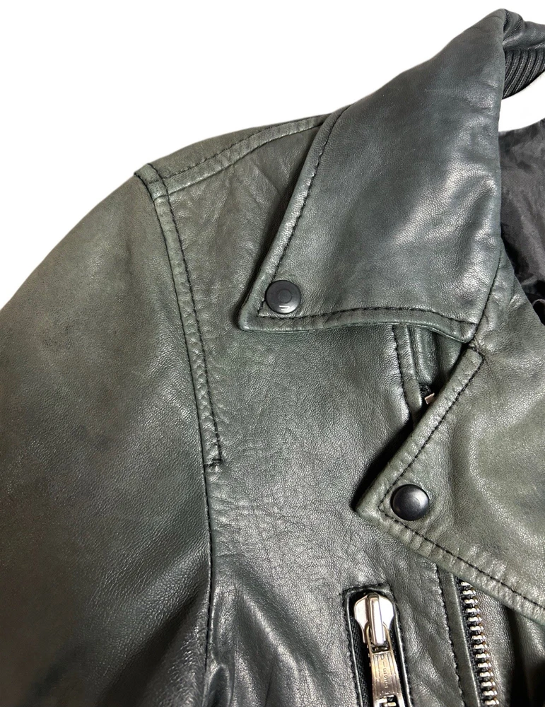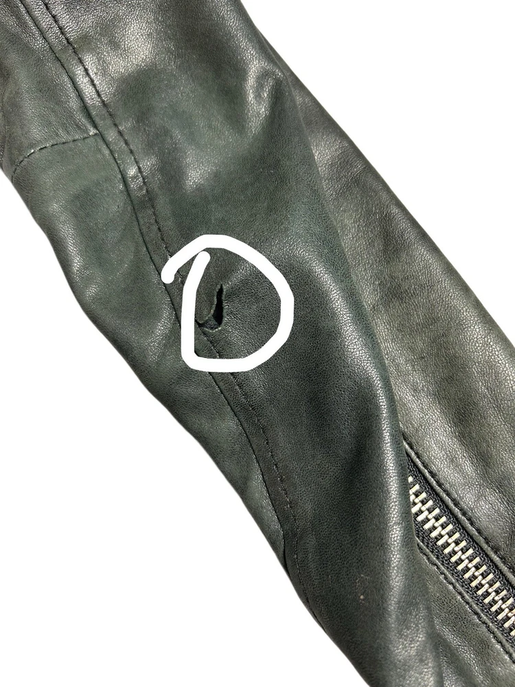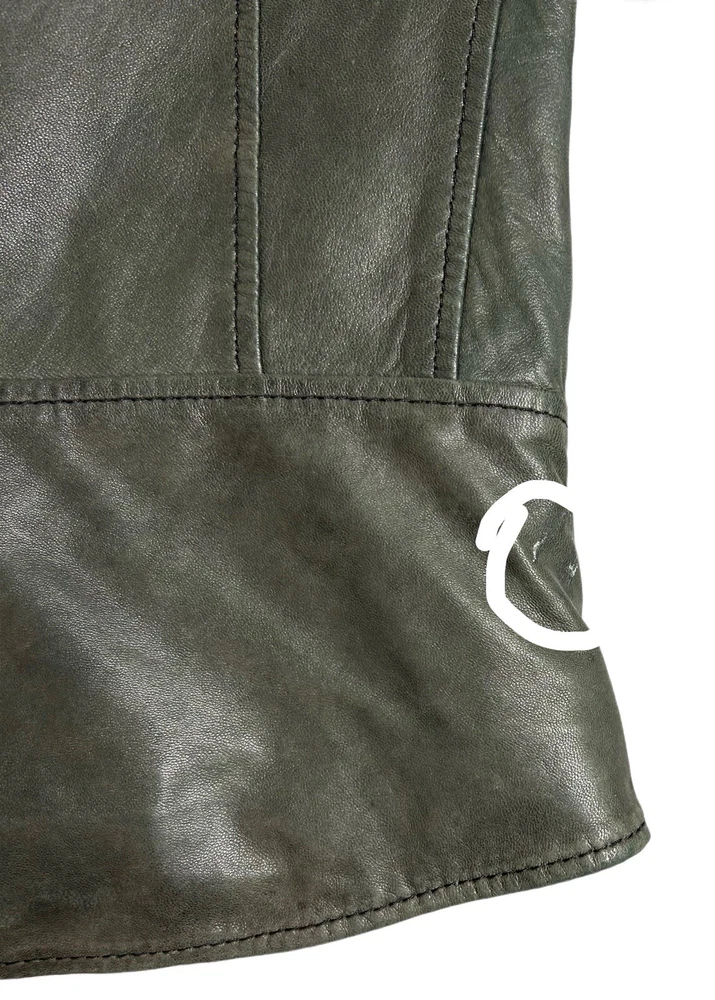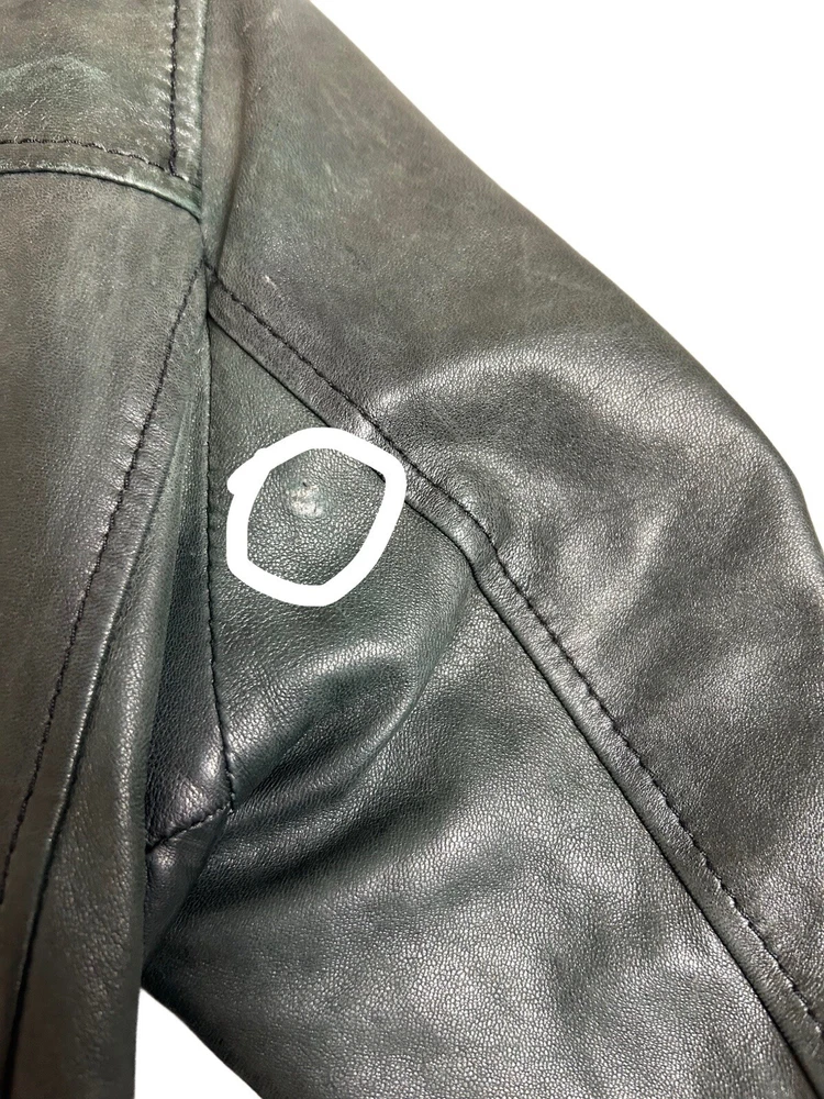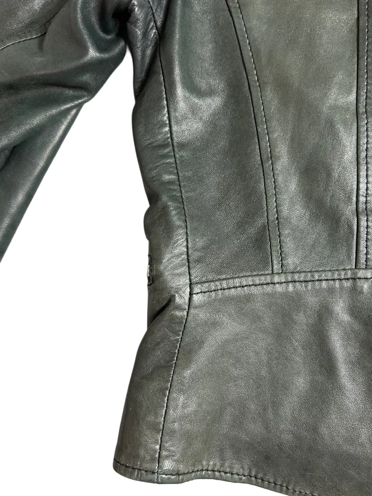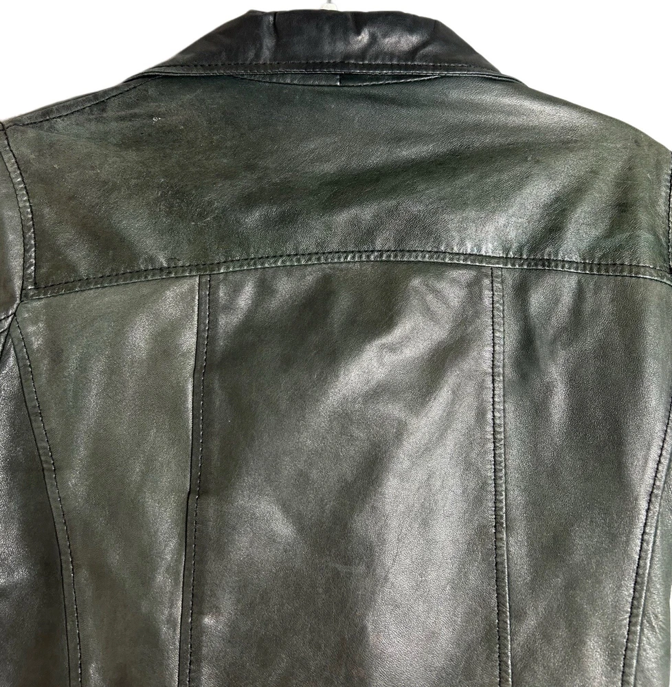 Vintage Women Diesel zipped Moto jacket. Size M Measurements have been provided in the photos. Lamb skin leather Made in Turkey Color: Black The leather on the jacket shows common vintage wear. Some areas of the leather look faded in color. Flaws: Few white stains. ( I have provided pictures ) 2 small spots where the leather has peeled. ( I have provided pictures ) 1 small tear on the sleeve ( I have provided pictures )