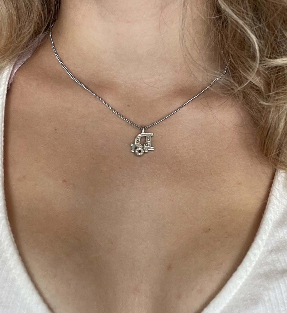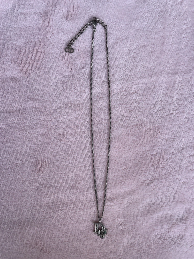 HomeVintage Dior Rhinestone Logo Pendant Silver Plated Necklace