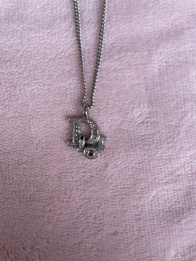 Main Stone Shape:RoundCustomized:NoColor:SilverMetal:Silver PlatedType:NecklaceSeller Warranty:NoVintage:YesStyle:PendantOccasion:AnniversaryMaterial:RhinestoneHandmade:NoSigned:YesPendant/Locket Type:CharmBrand:DiorPersonalize:NoSecondary Stone:No StoneWholesale:No
