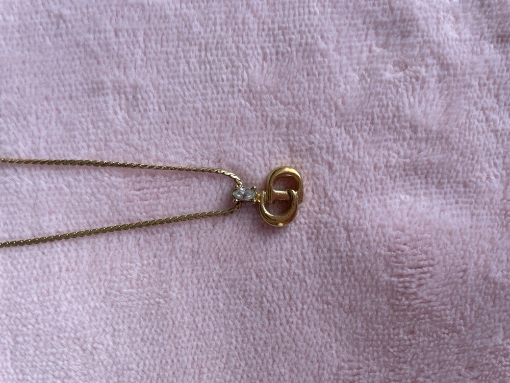 $ 42.24christian dior cd logo silver plated pendant rhinestone necklace