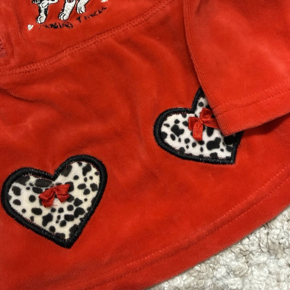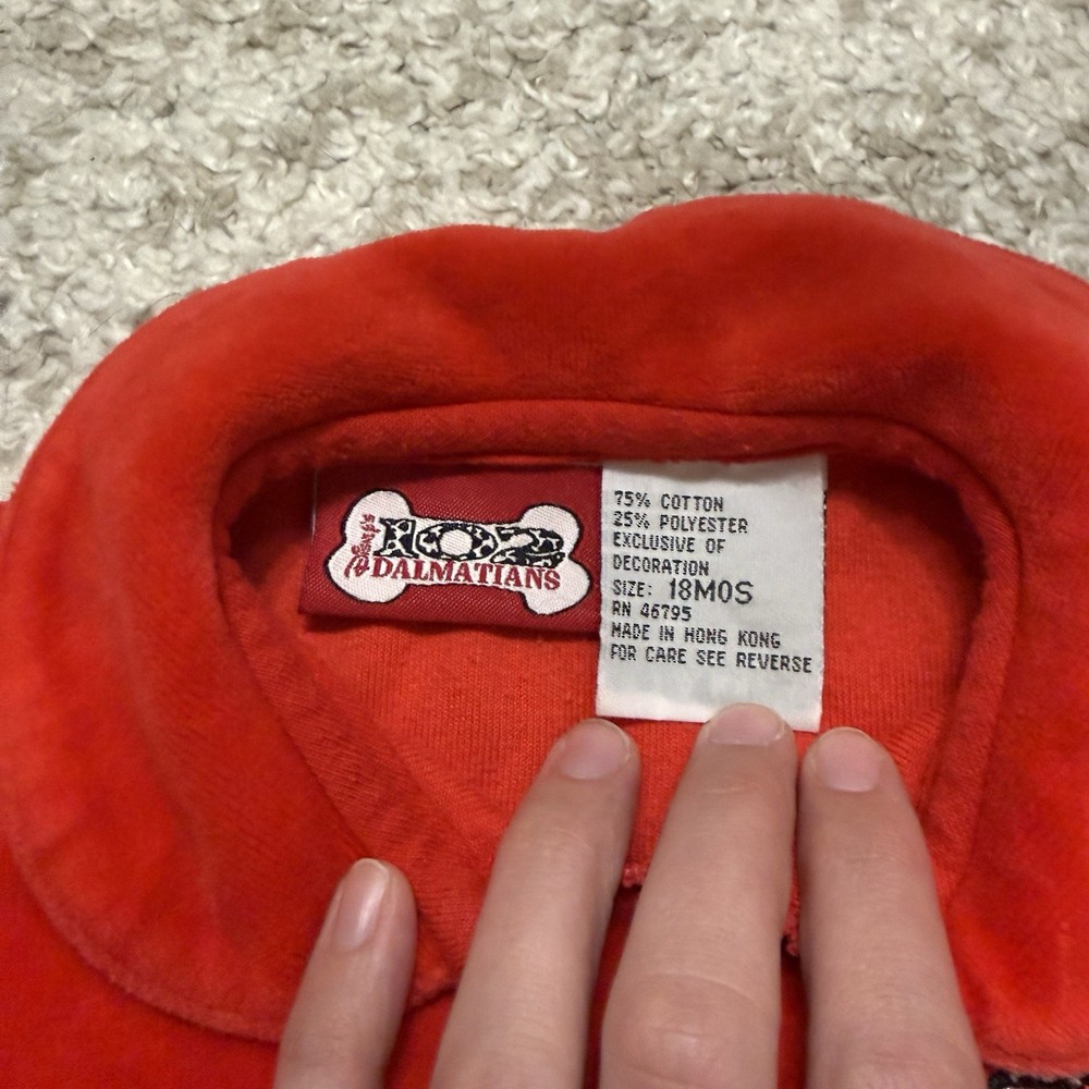 This Vintage Disney 102 Dalmatians Kid’s Top in velvet longsleeve is a charming addition to any 18-month-old's wardrobe. The solid red color and classic Disney character family make it a perfect choice for casual occasions during the fall and spring seasons. With its regular fit and machine washable care, it offers both comfort and convenience for little ones who love the iconic Dalmatian characters from the beloved Disney film.