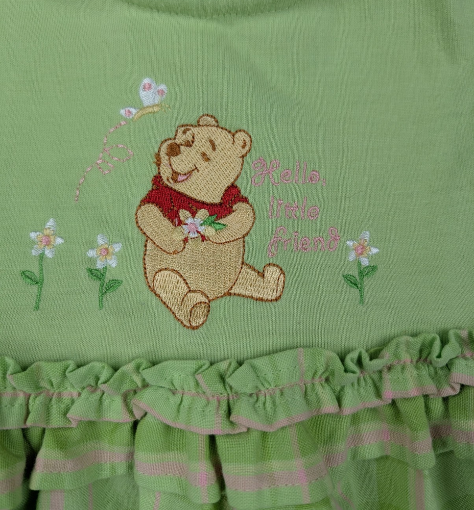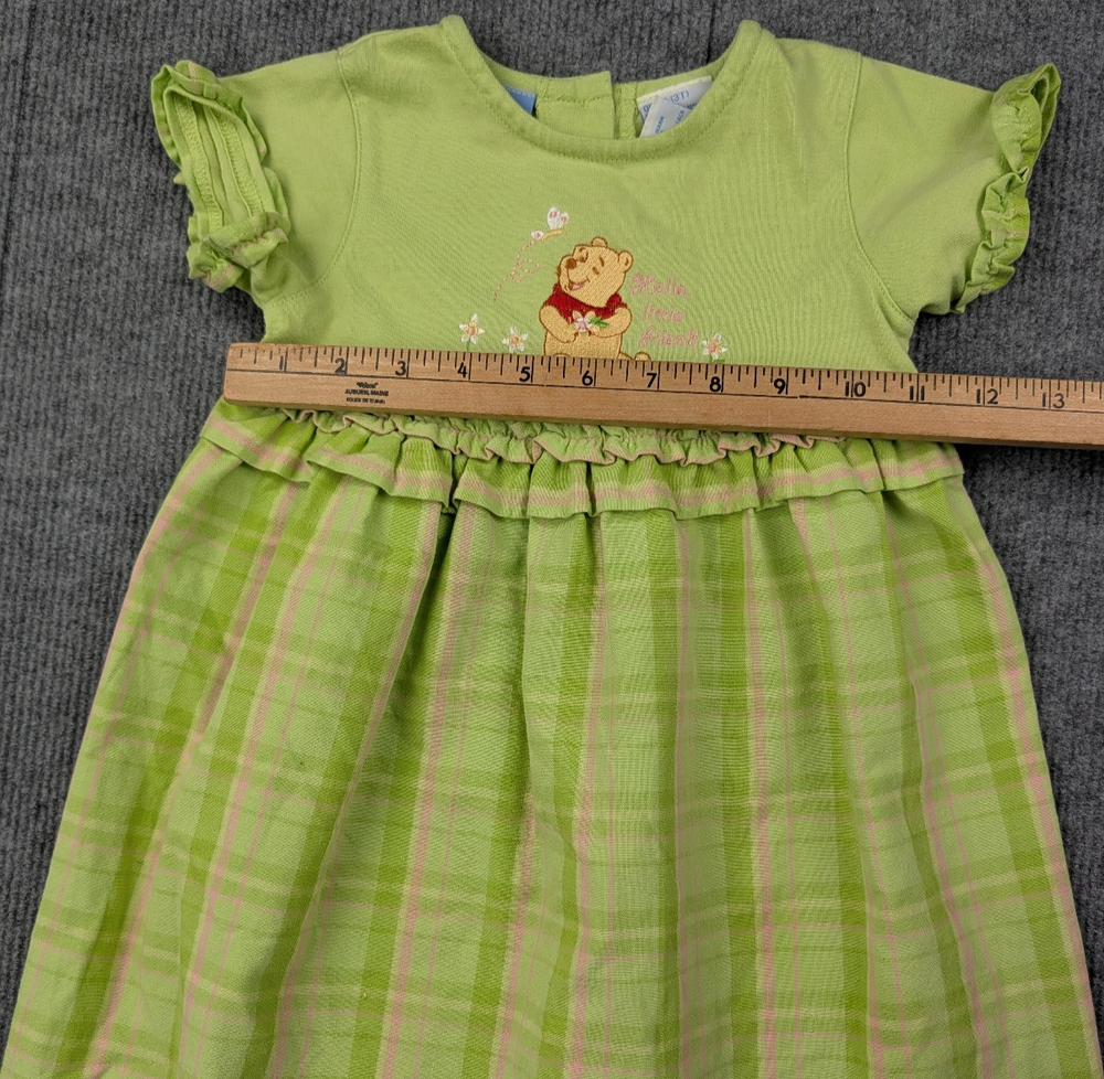 Brand: Disney Item Type: Dress Gender: Girls Size: 3T Color: Green / Light Green / Multicolor Pattern: Plaid Character: Winnie the Pooh Sleeve Length: Short Sleeve Features: Ruffle Trim, Embroidered Character, Lightweight Material: Cotton / Polyester Blend Closure: Pullover Season: Spring / Summer Country/Region of Manufacture: Macau Condition: Pre-owned