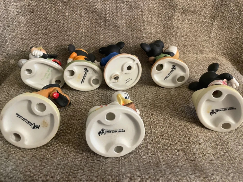 This lot of 7 adorable vintage figurines are perfect for Disney collectors. 3 of the figurines show wear and minor damage. NOTE: the last 2 photos highlight the chips and pieces that were glued back on.