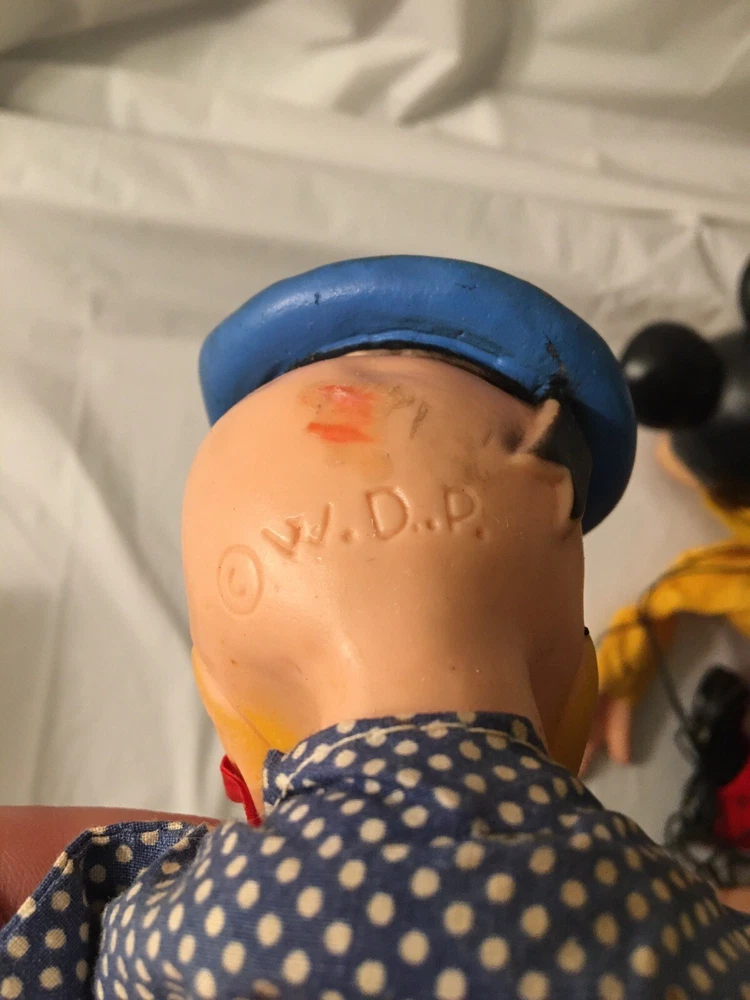 This vintage Disney Gund puppet toy set features Donald Duck and Mickey Mouse, both beloved characters from the Disney franchise. These plush toys are designed in collaboration with Walt Disney Productions (W.D.P.), adding to their collectible value. The puppets showcase the iconic charm and whimsy of these classic Disney characters, making them a delightful addition to any Disneyana collection.