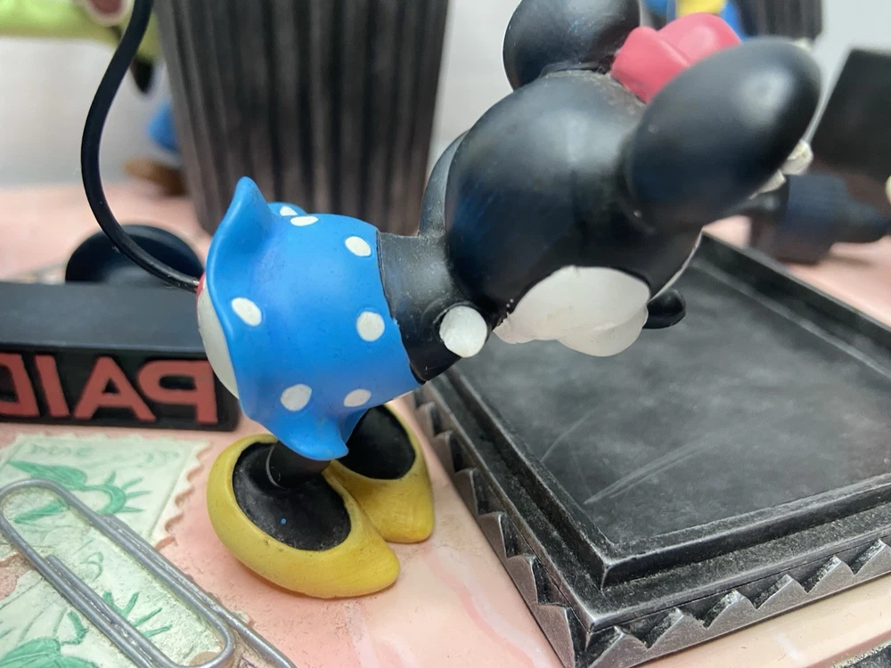 Mini mouse has a broken arm and is missing the arm. Everything else is in good shape. It is in used condition and is in good condition for how old it is Very rare piece