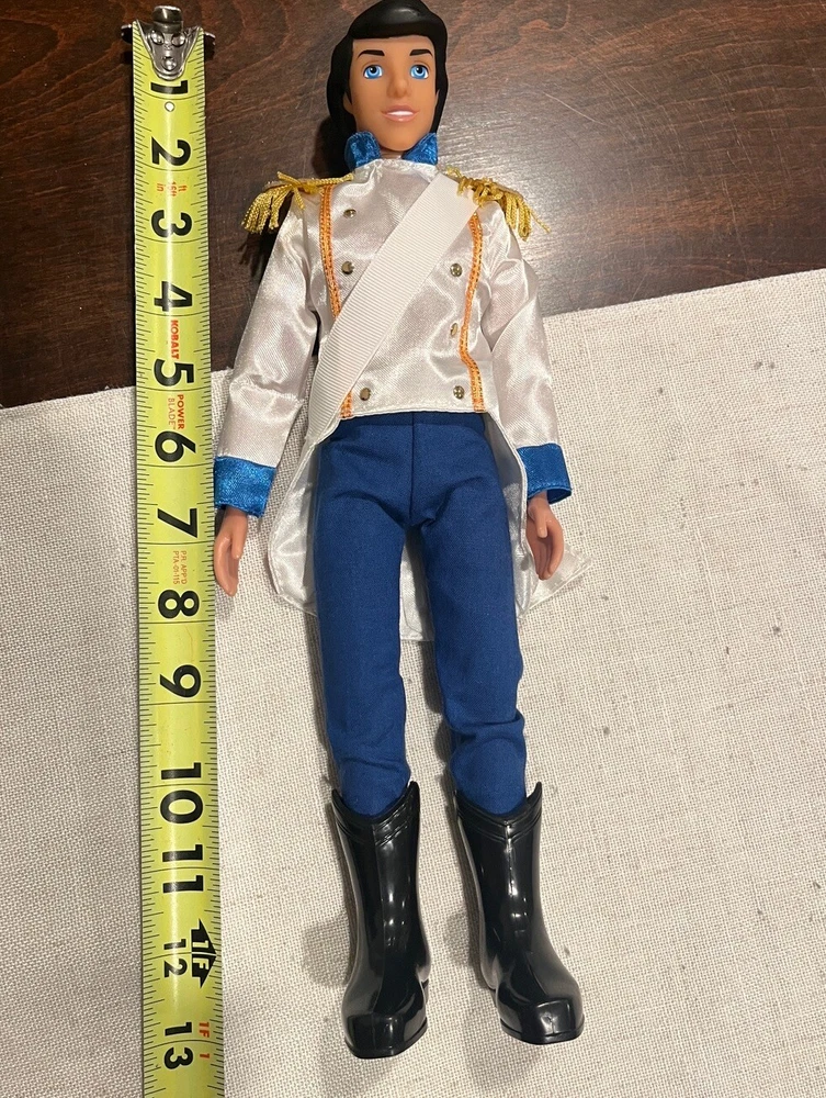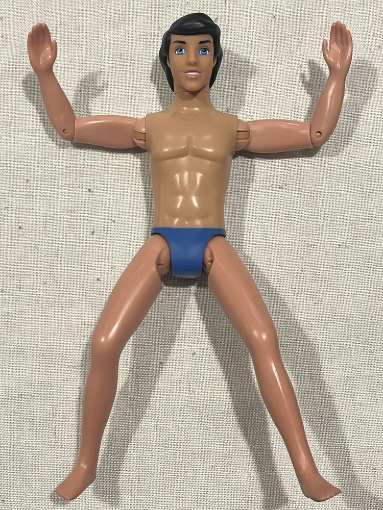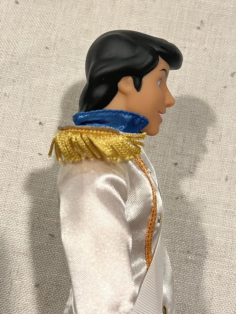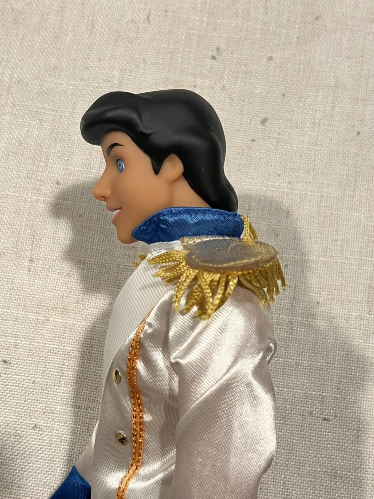 Features: Articulated, Fully Posable Doll Size: 12.5 in Set Includes: Doll Item Length: 12 in Franchise: The Little Mermaid Character: Disney Princess, Eric Brand: Disney Product Line: Disney Store Dolls gtin13: 409206500602 Packaging: Without Packaging Type: Doll Material: Cloth, Plastic Character Family: The Little Mermaid Doll Hair Color: Black UPC: 409206500602 Vintage: Yes Doll Eye Color: Blue Doll Gender: Boy Doll