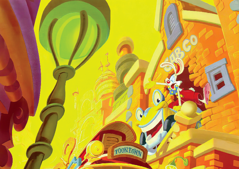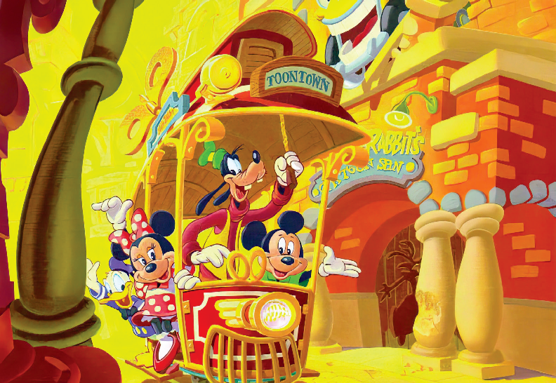 Vintage Disney Toontown Mickey & Roger Rabbit Trolley Poster 13x19 Decor