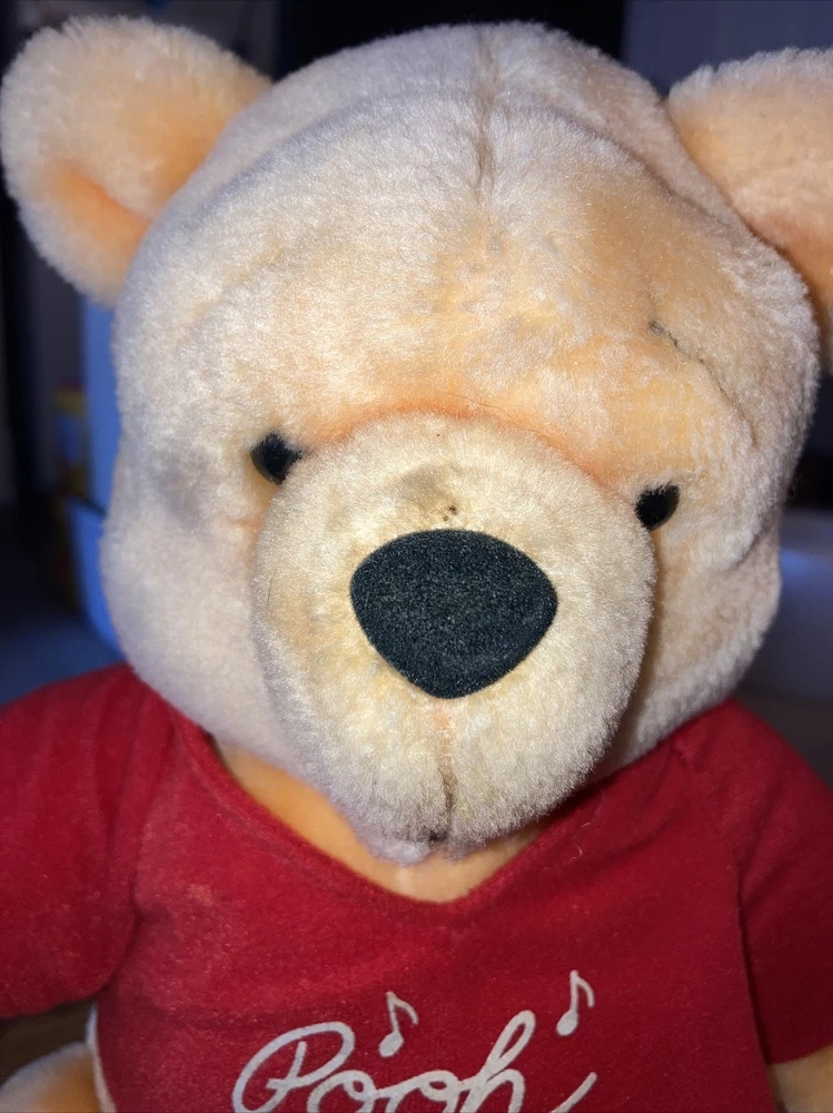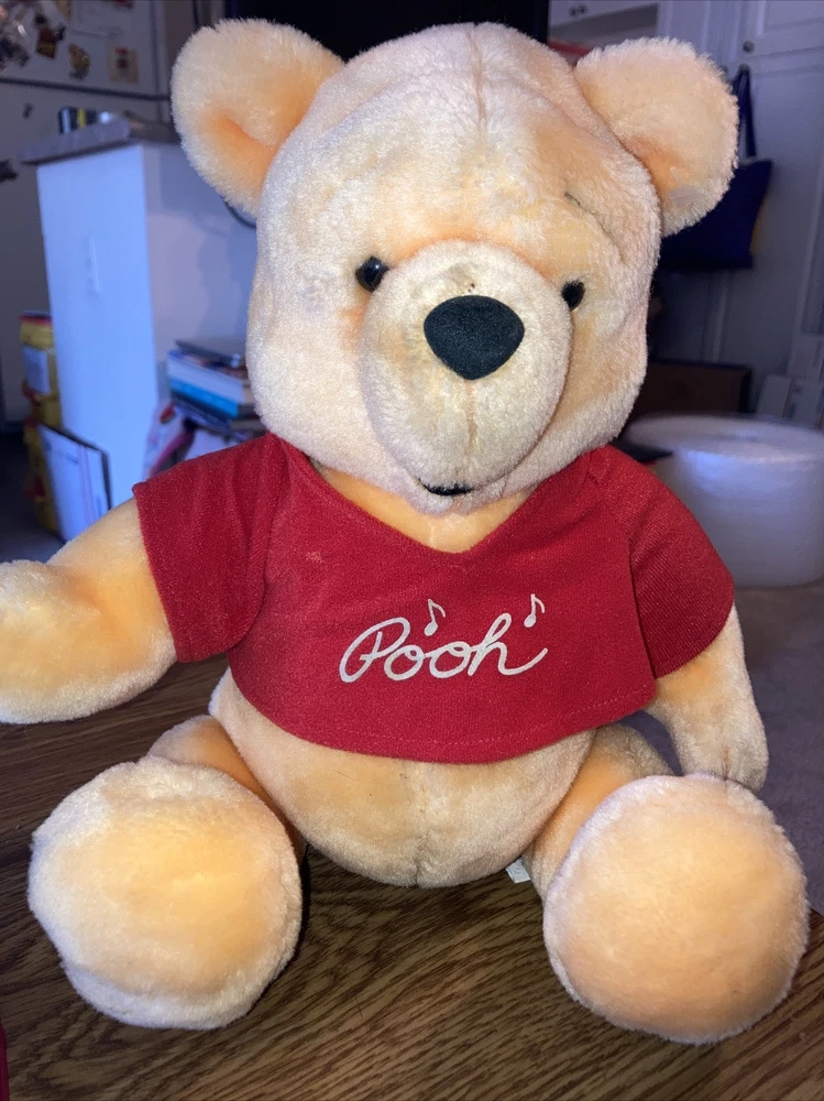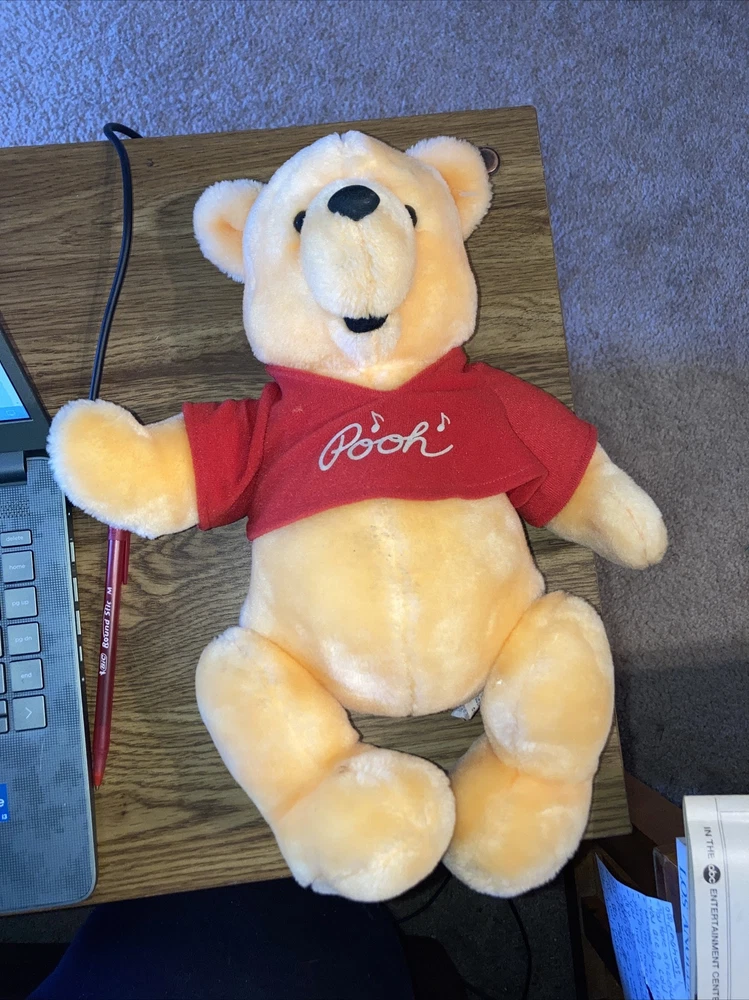 Vintage Disneyland Disney World 13" Plush Winnie the Pooh Bear Model MFR-100, Made in Korea, Has Jointed Arms and Legs - good condition - see pictures 042622 Prompt Payment greatly appreciated . All orders are shipped ( taken to the post office) within the posted handling time . Please allow Ample time for Tracking to update in the system . it typically takes 24-48 hours for the tracking to update, sometimes longer but rest assured your order is on the way, It is the buyer's responsibility to cancel if for any reason they are unable or unwilling to complete a transaction; Once an item has shipped it is too late to cancel.