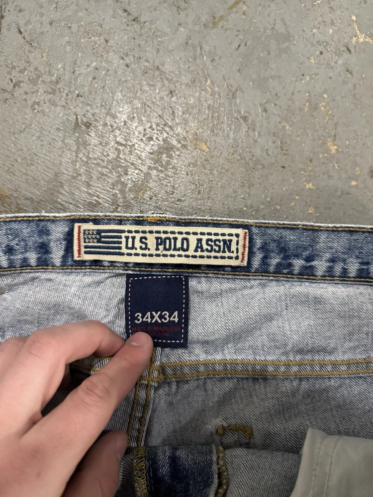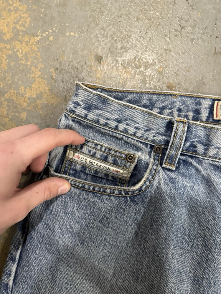 Vintage Distressed US Polo Assassin Y2K Grunge Light Blue Baggy Jeans 34x30