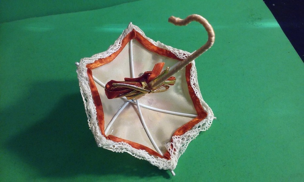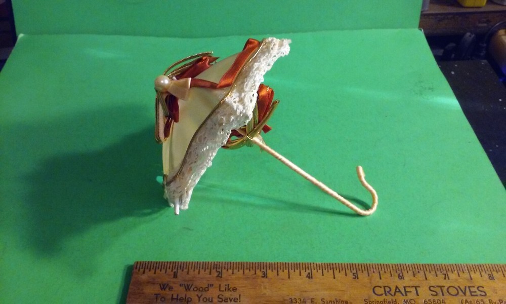 Vintage doll or decorative Umbrella Parasol Fancy Lace Wire & Ribbons Crafted.