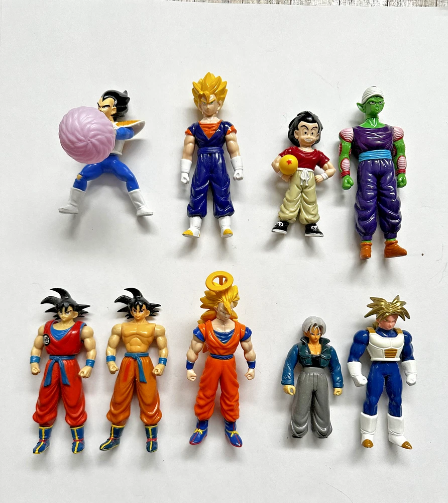 This vintage Dragon Ball Z action figure lot includes several figures from the iconic anime series. Each figure is made by Bandai, ensuring high quality and attention to detail. These action figures are perfect for collectors or fans of the franchise. The lot includes several different characters, each with their own unique design and style. Some of the figures are in great shape, while others may have some signs of wear and tear. Overall, this lot is a great addition to any Dragon Ball Z collection.