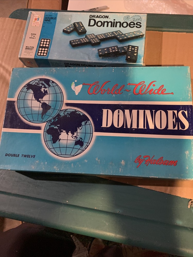 lot of 2 sets of dominoes Dragon double nine set of 55 piece and Hallam double twelve set of 91 piece Both sets are in excellent condition
