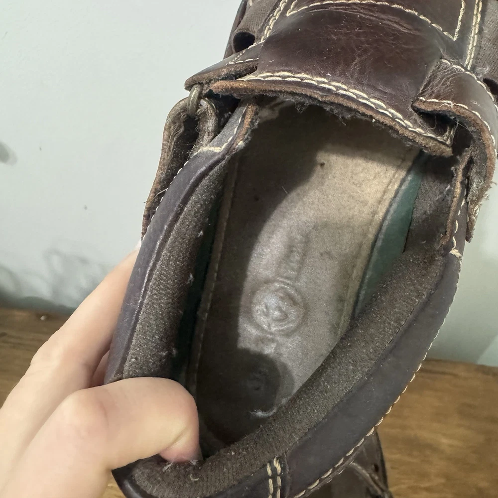 Pre-owned, has pilling on inner heel area and wear on insoles. Size men’s 9.5M.