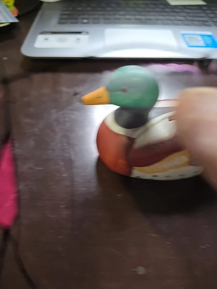 This vintage duck mallard coin bank is an original ceramic figurine standing at 6 inches tall. The painted details bring this charming piece to life, making it a unique addition to any collection or decor. With its classic design and functional purpose, this piggy bank is a nostalgic and practical way to save loose change.