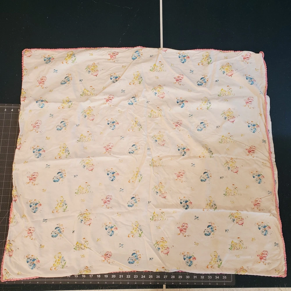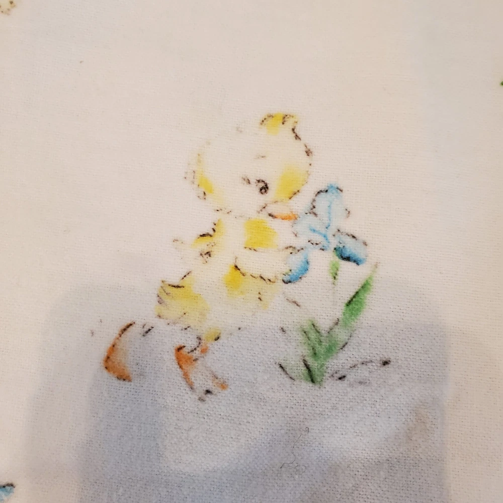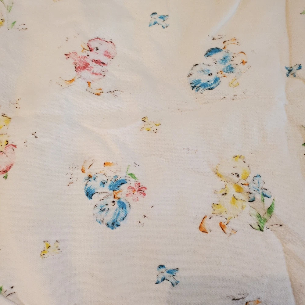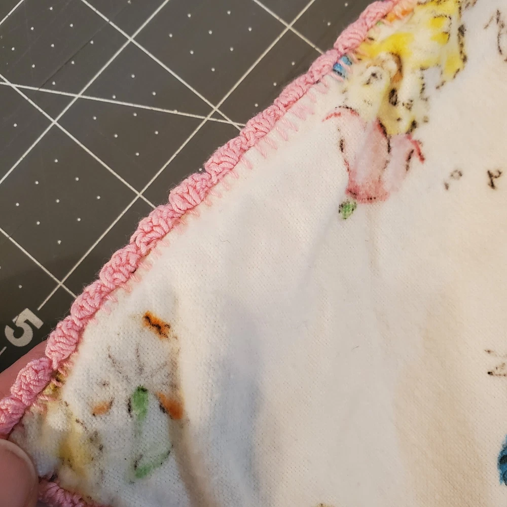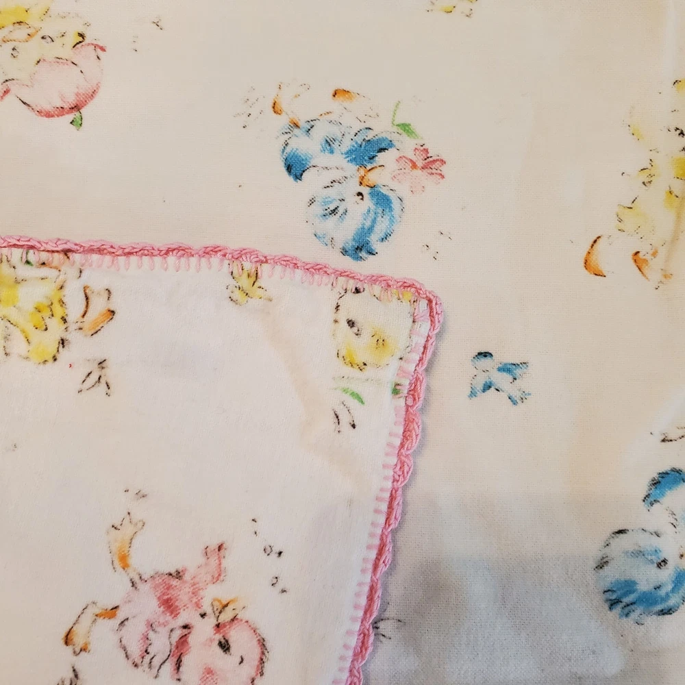 Vintage Dundee Ducklings Flannel Handmade Baby Blanket Crocheted Edge Easter