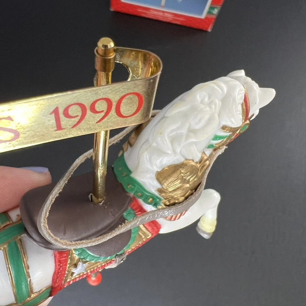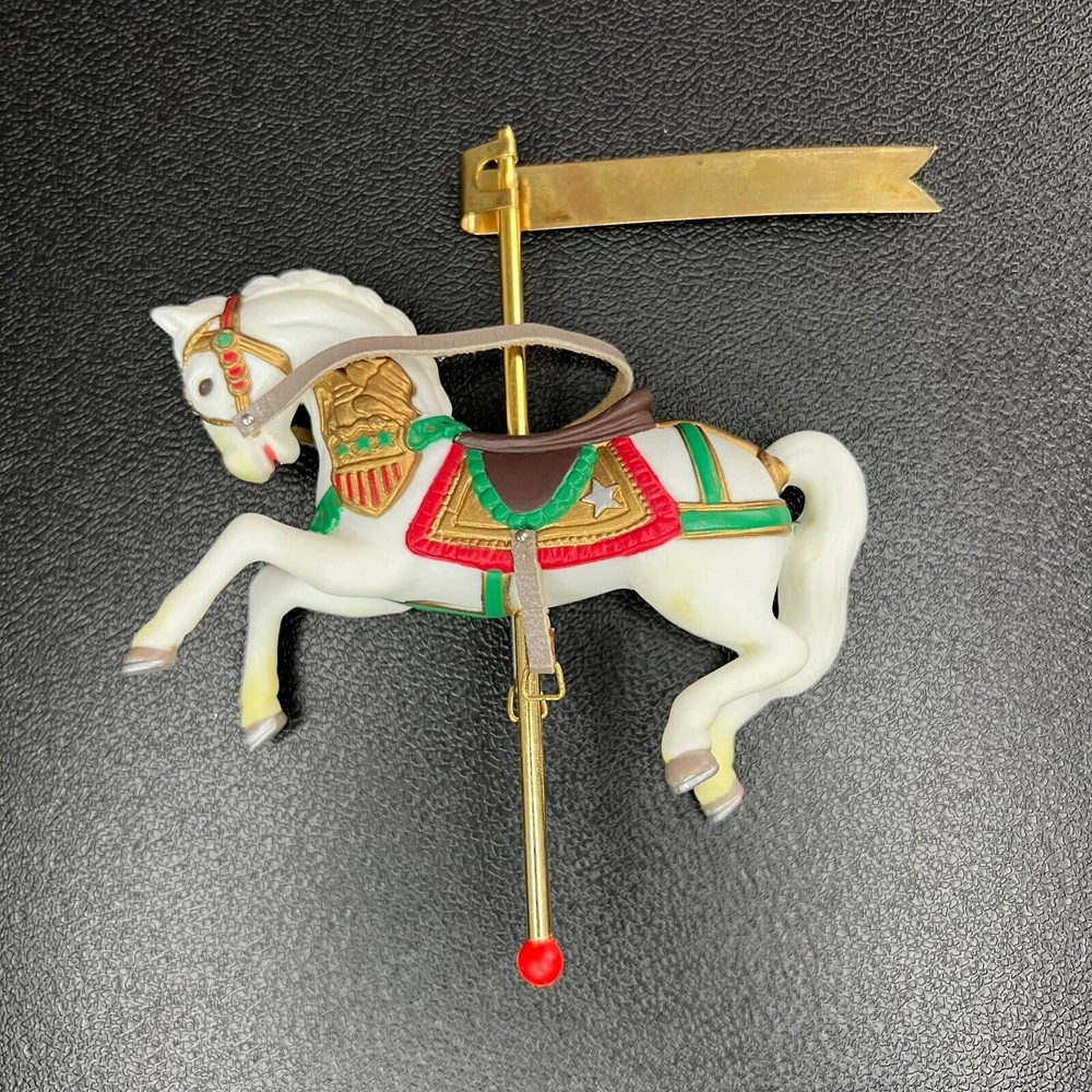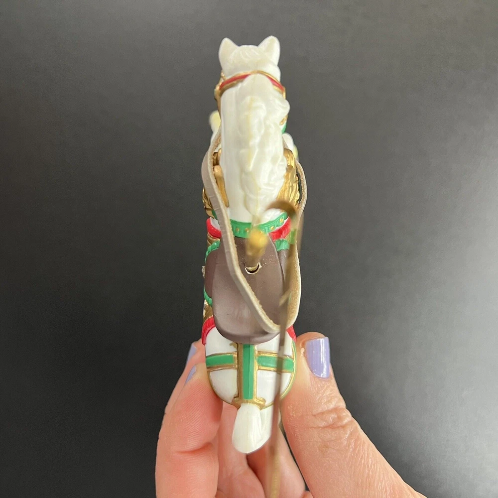 ENESCO vintage Christmas Tree Ornament of a 1990 Carousel horse from the "Christmas Carousel" series. Approximate Measurements: 4.5" x 4" Please see photos for more item details.