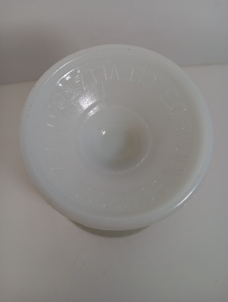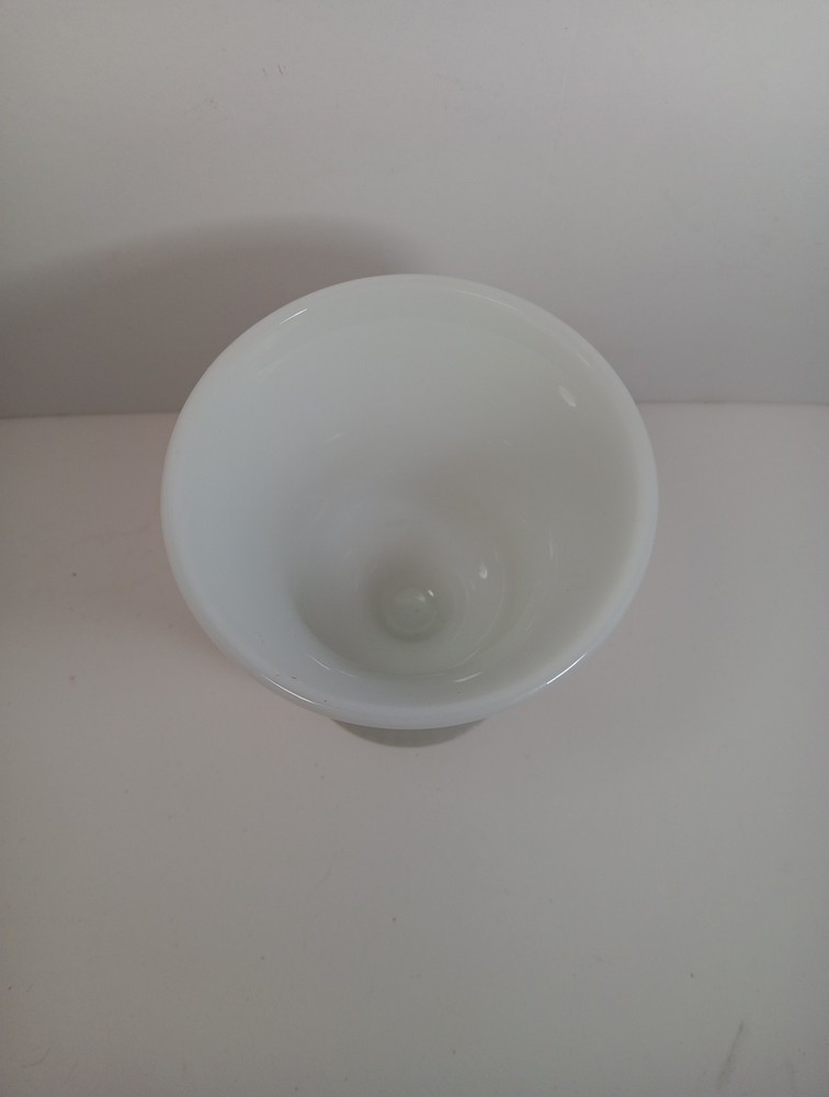 Vintage E.O. BRODY White Milk Glass Ribbed Pedestal Vase Planter is a collectible decorative vase with a ribbed pattern. Made of white glass, it features a pedestal design. Ideal for displaying flowers or as a standalone decorative piece in any home or office setting. NO chips/cracks. This item is a part of an Estate Sale. All items are sold AS-IS. All sales are final. G.....
