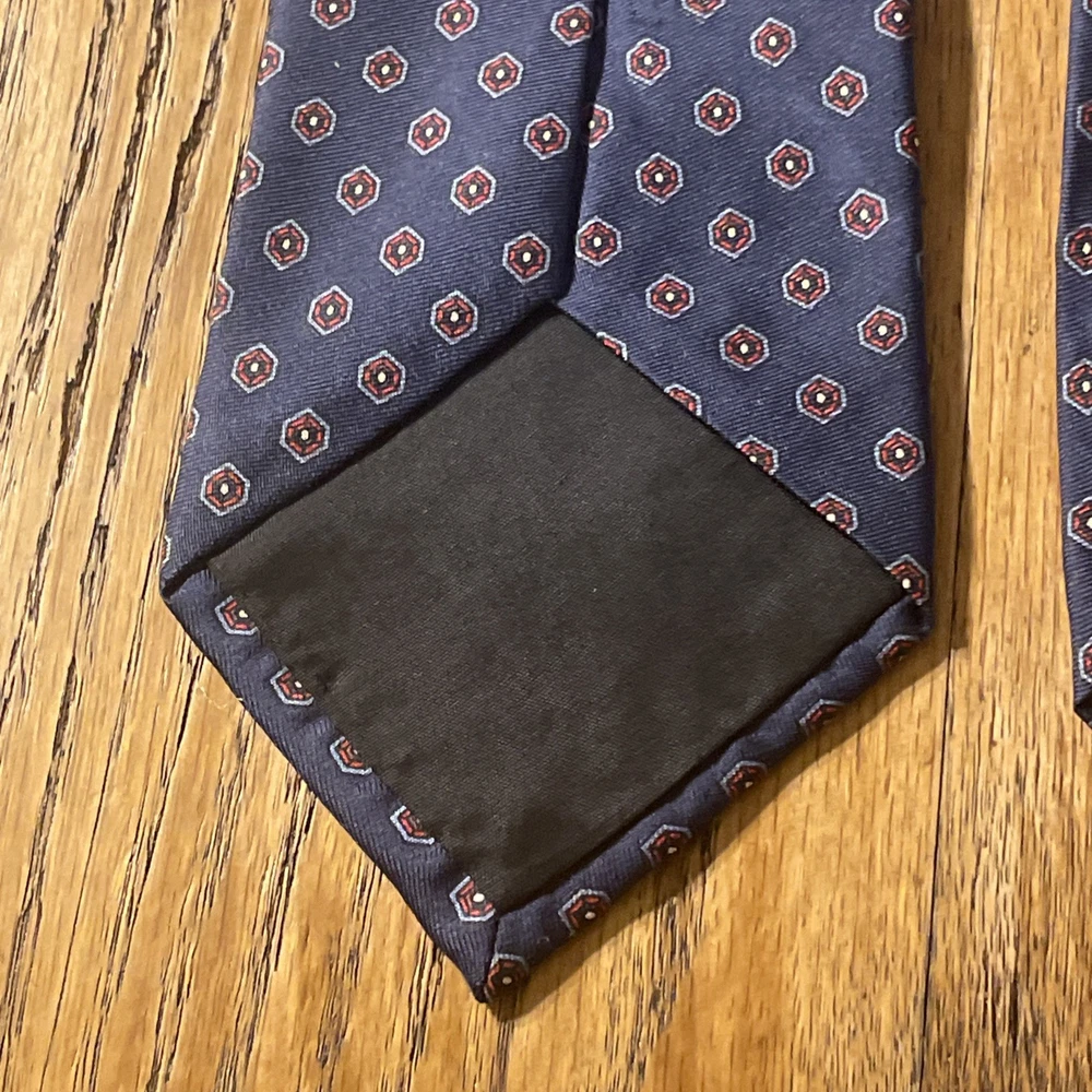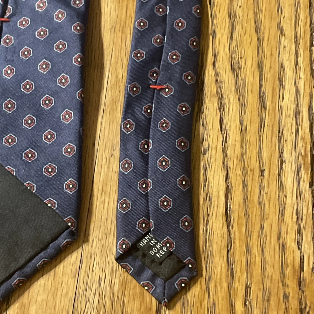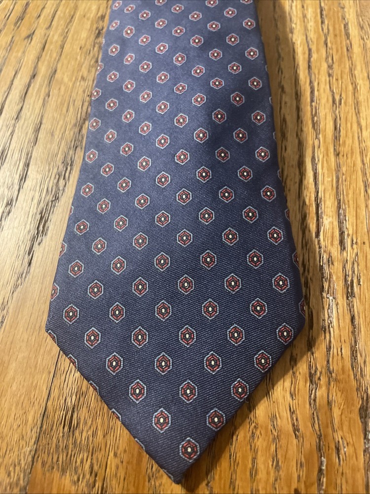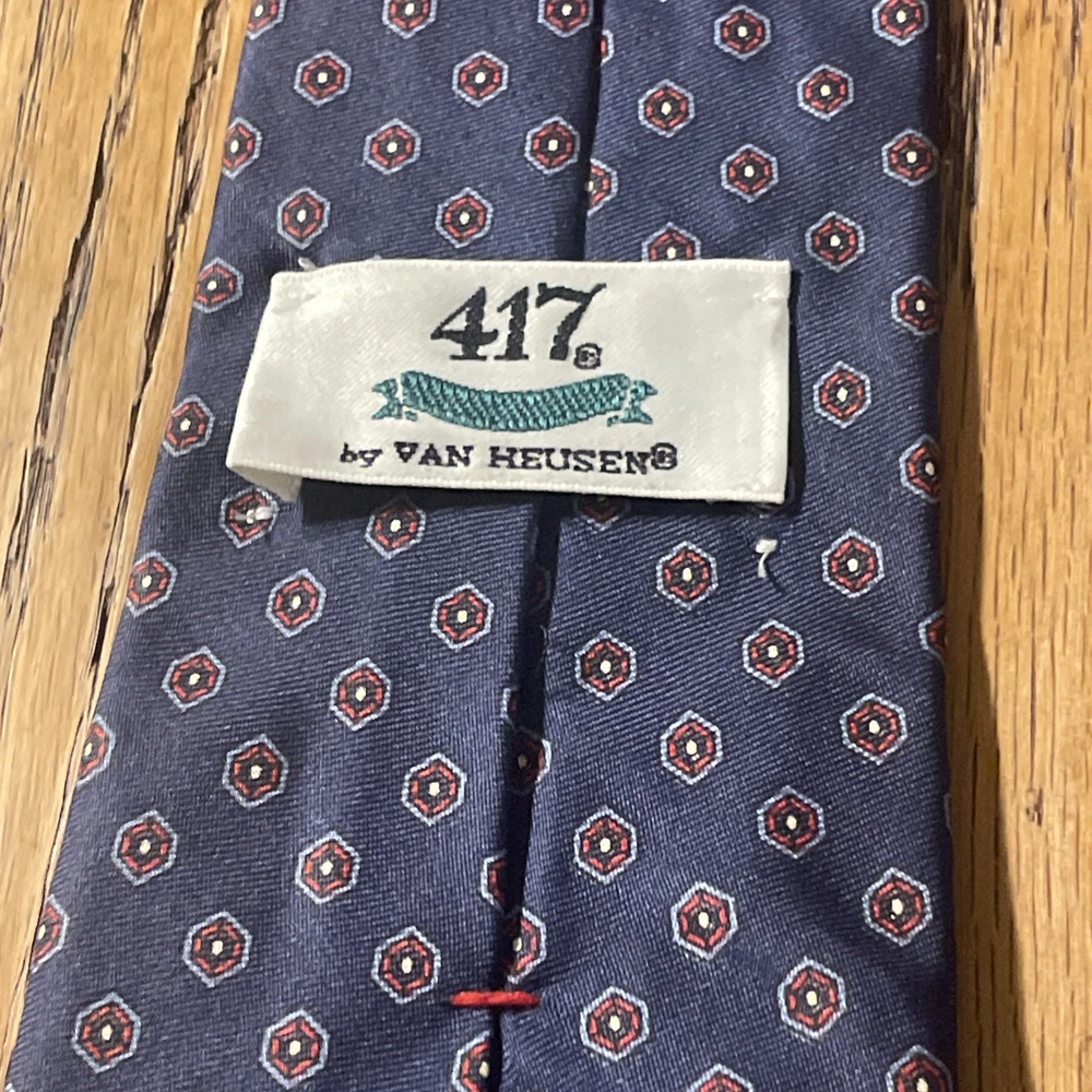 This Vintage EUC 417 By Van Heusen Silk Foulard Tie is a high-quality men's necktie crafted from 100% silk. The classic narrow width and designer preppy style make it a timeless accessory for any formal occasion. The multicolor foulard pattern adds a touch of sophistication to any outfit, making it a versatile piece that can be worn for years to come. Perfect for adding a vintage touch to your wardrobe, this tie embodies classic elegance and style.
