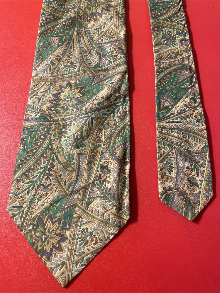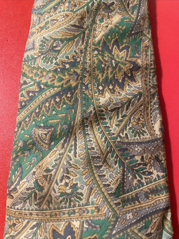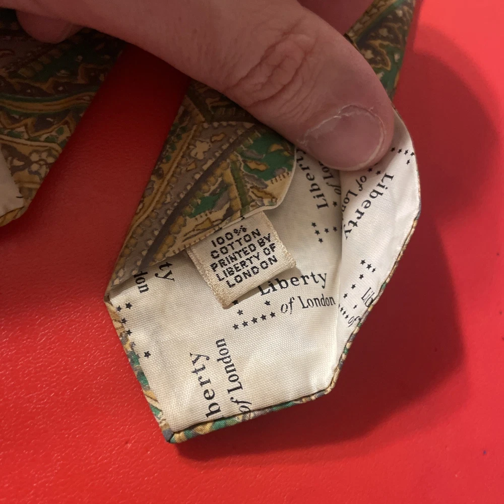 Add a touch of vintage charm to your wardrobe with this Liberty of London tie. Featuring a colorful paisley pattern, this 100% cotton tie is perfect for any mod or disco-inspired outfit. The wide width adds a stylish touch to any outfit, while the designer style and multicolor pattern make it a standout accessory. This tie is perfect for any vintage-loving man, and it's made in the United States to boot. Whether you're dressing up for a special occasion or just adding some flair to your everyday look, this Liberty of London tie is a must-have. So why wait? Add it to your collection today!