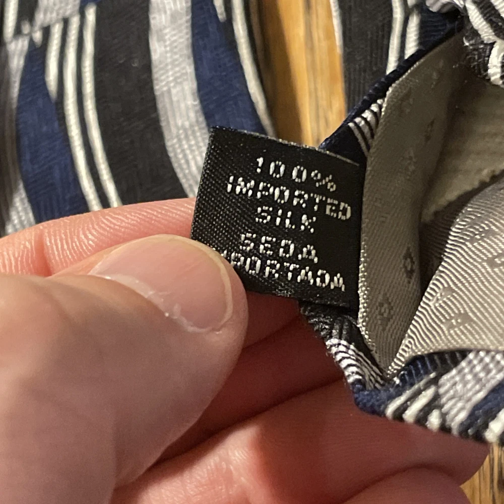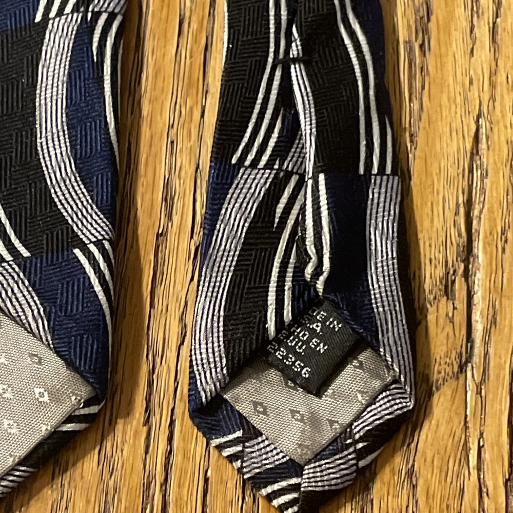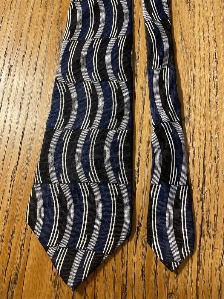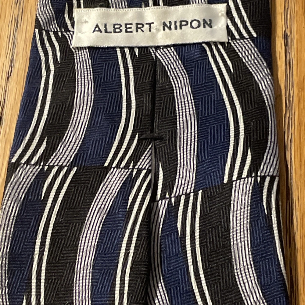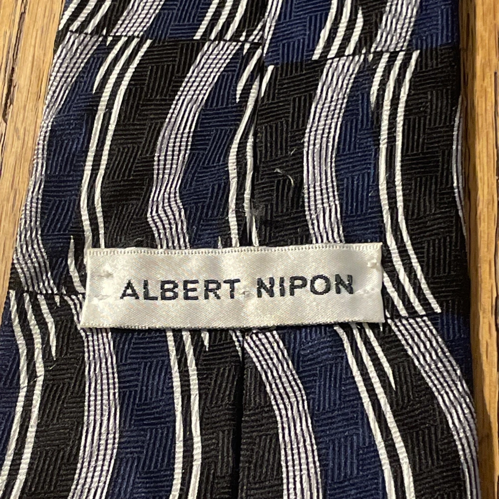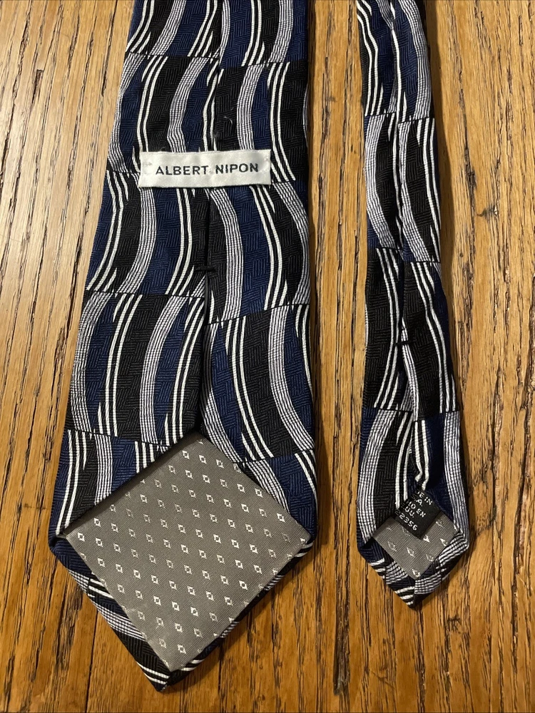 The Vintage EUC Albert Nipon Abstract Geometric Silk Tie is a classic and designer piece made in the USA. This multicolor tie features a preppy geometric pattern, perfect for adding a touch of sophistication to any outfit. Made from 100% silk fabric, this necktie exudes quality and style, making it a timeless accessory for men who appreciate vintage fashion.