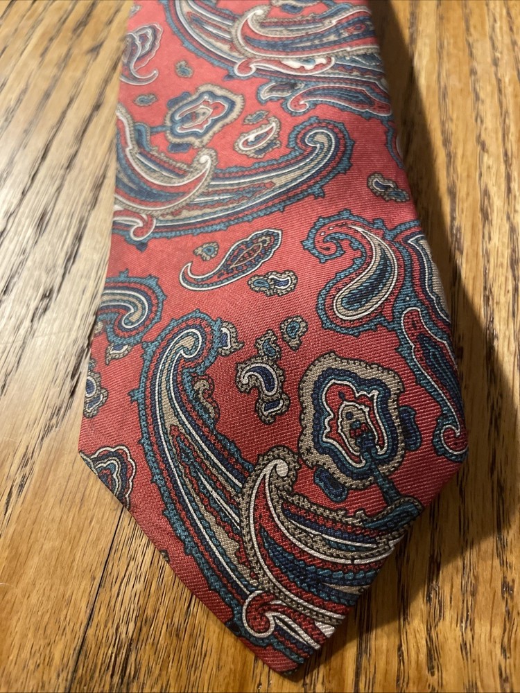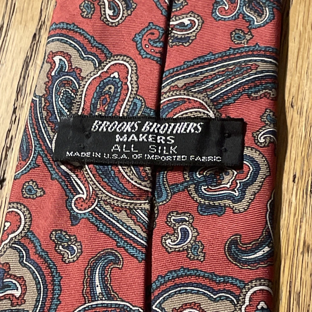 This Vintage EUC Brooks Brothers Silk Paisley Tie is a classic and stylish accessory for men. Made in the USA with 100% silk, this designer tie features a multicolor paisley pattern, embodying a preppy and sophisticated style. Perfect for adding a touch of vintage charm to any outfit, this tie is a timeless piece that exudes quality and elegance.