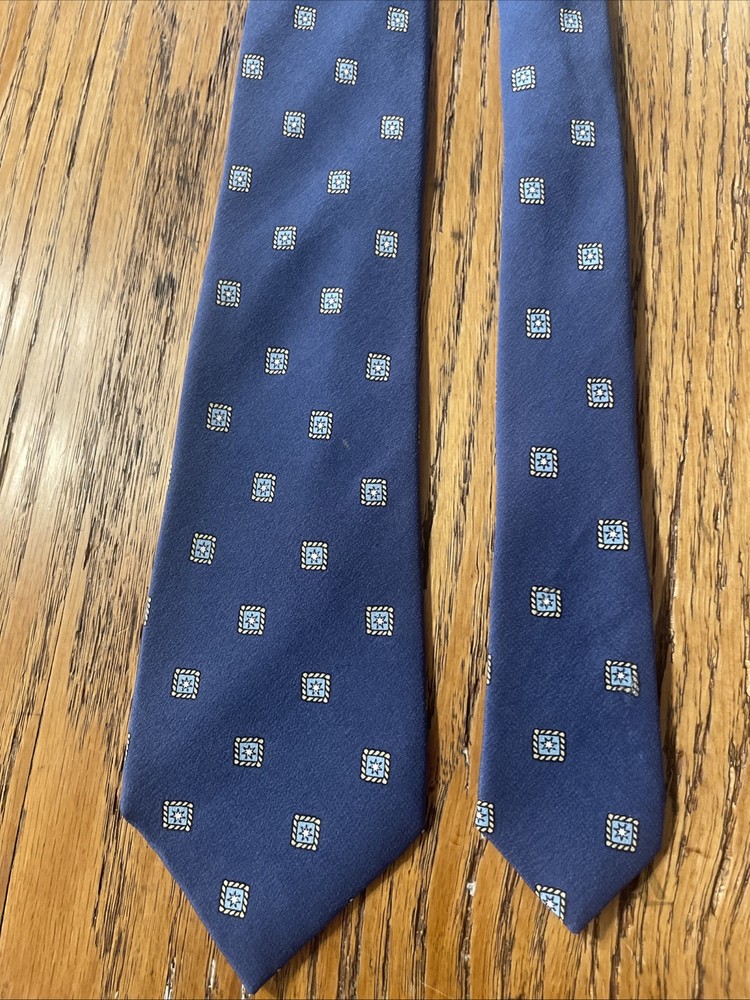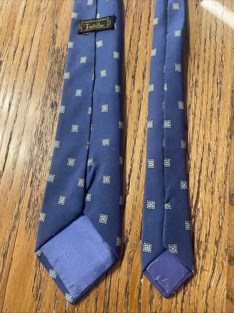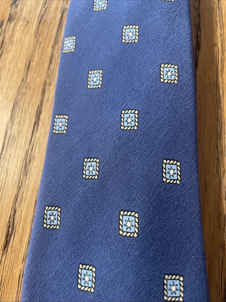 This Vintage Emilio Pucci Geometric Foulard Silk Tie is a classic and preppy designer accessory for men. Made in Italy from 100% silk satin, this multicolor tie features a semi-skinny width and a distinctive geometric Foulard pattern. The vintage nature of the item adds a touch of elegance and sophistication to any formal or professional outfit, making it a timeless piece for any man's wardrobe. Little bit of gentle wrinkling around the knot, but not bad at all, very minor.