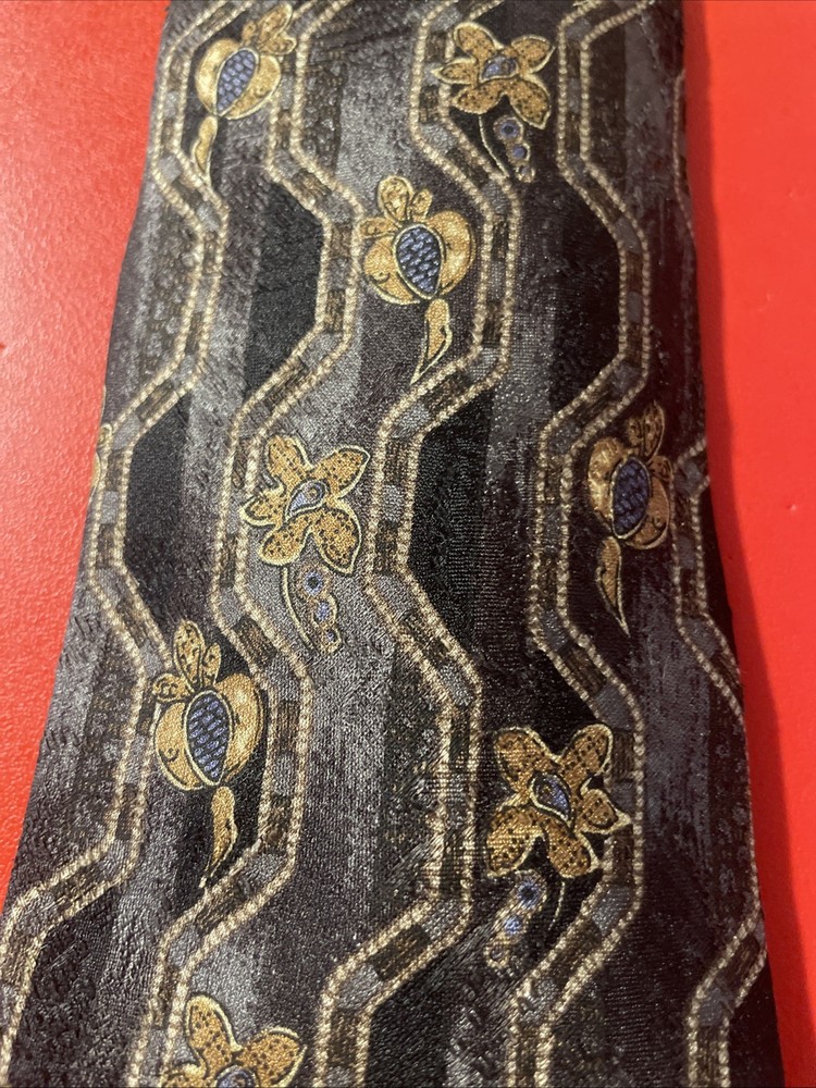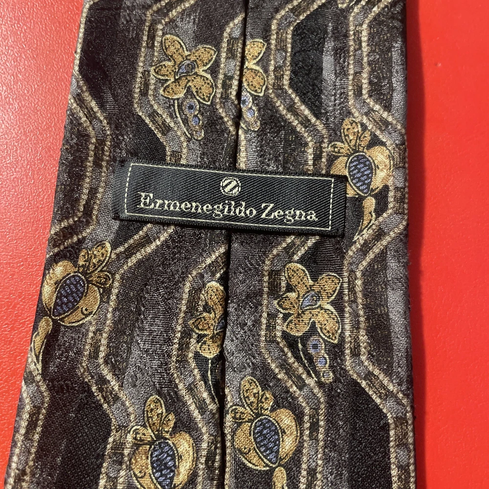 Elevate your formal attire with the Vintage Ermenegildo Zegna Silk Tie, an impeccable accessory for the distinguished gentleman. Boasting an eye-catching Abstract Floral / Paisley Droplets pattern, this necktie is a testament to Zegna's commitment to luxury and timeless style. The vibrant multicolor palette ensures this tie will add a dash of sophistication to any outfit, making it a versatile choice for a variety of occasions. Crafted from 100% silk with a classic width, it offers a smooth, high-quality finish that speaks volumes of its Italian-made craftsmanship. Whether it's for business or a special event, this designer tie exemplifies preppy elegance and is sure to enhance your wardrobe with its enduring appeal and distinctive design.